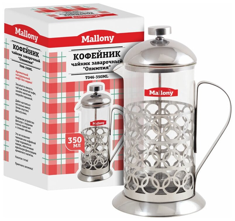 Френч-пресс Mallony Олимпия T046-1000ML 1.0л (сталь) (950093)