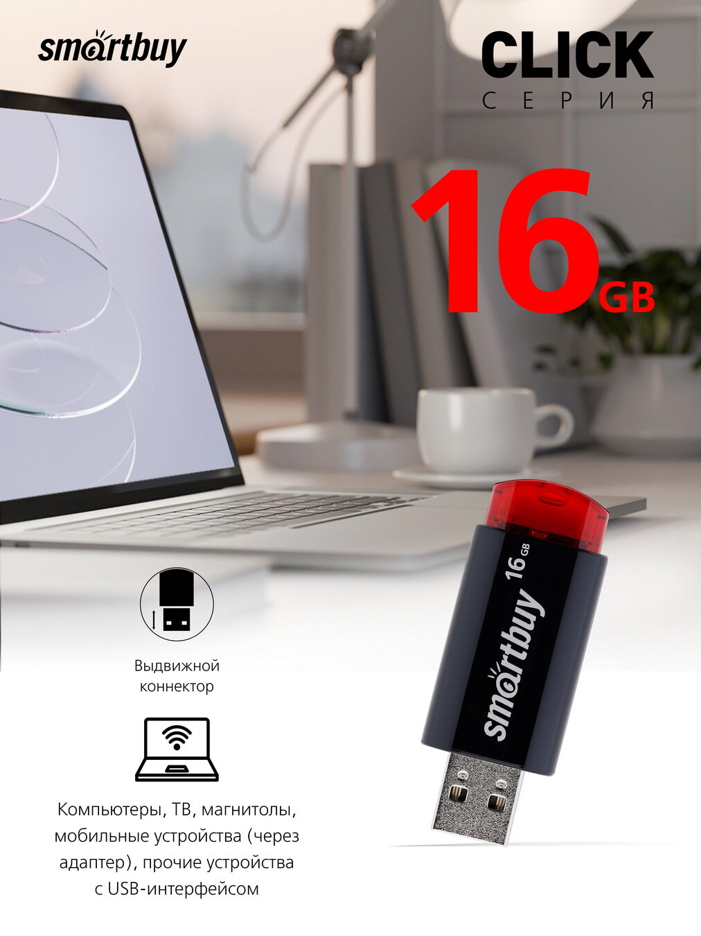 Купить SMART BUY SB16GBCL-K Карта памяти USB 16GB Click черная SMART BUY