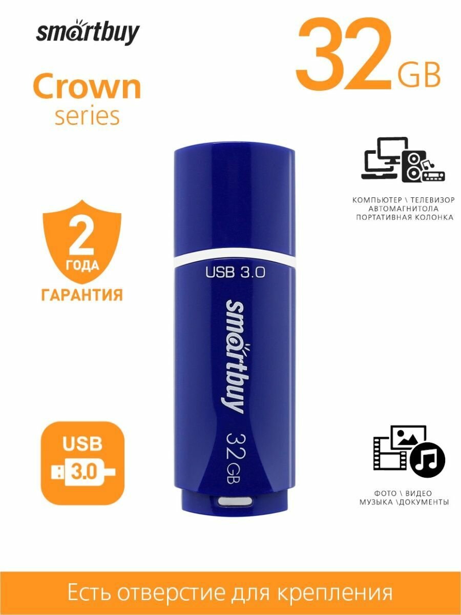 Флеш-карта SmartBuy 32 гб Crown USB 3,0, синяя (SB32GBCRW-Bl)
