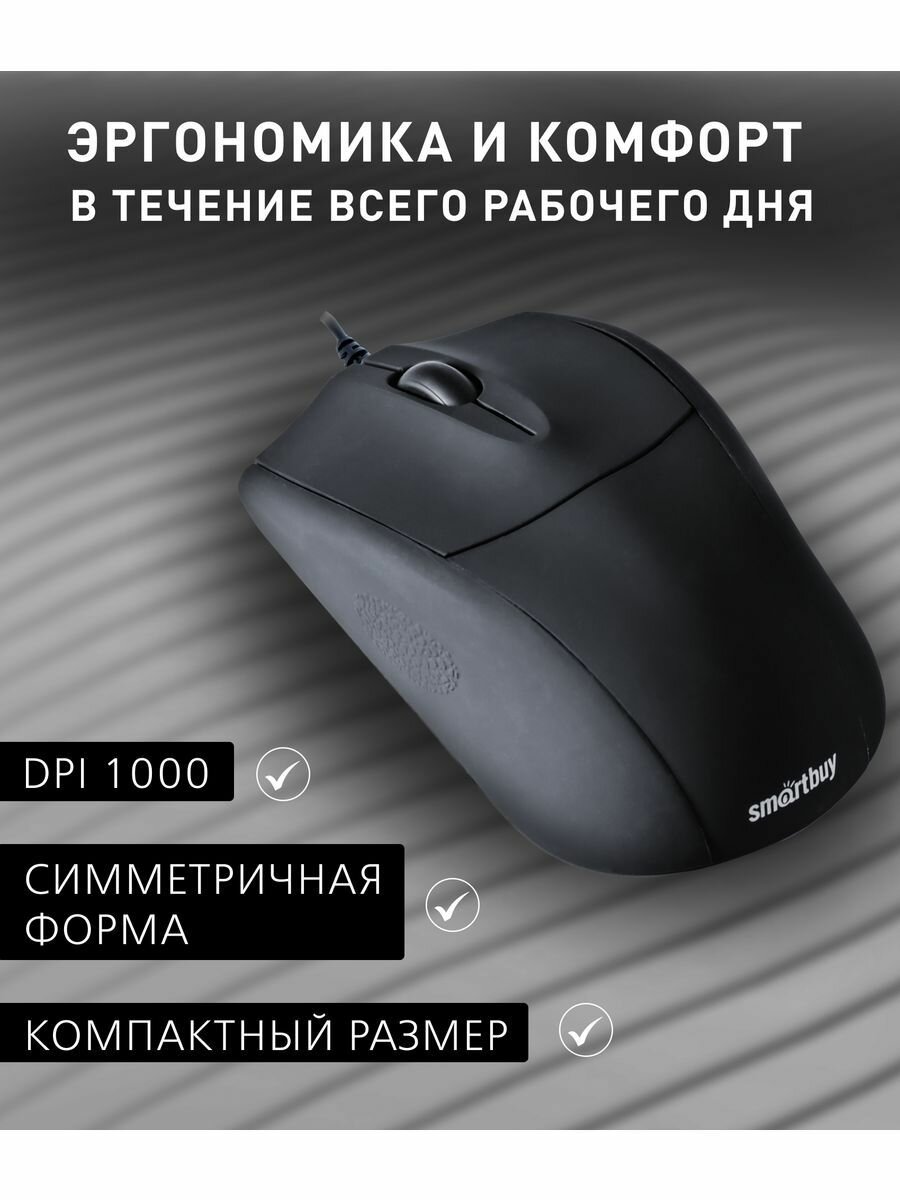 Мышь проводная SmartBuy, 325, 1000 DPI, оптическая, USB, 3 кнопки, цвет: чёрный, (арт.SBM-325-K)