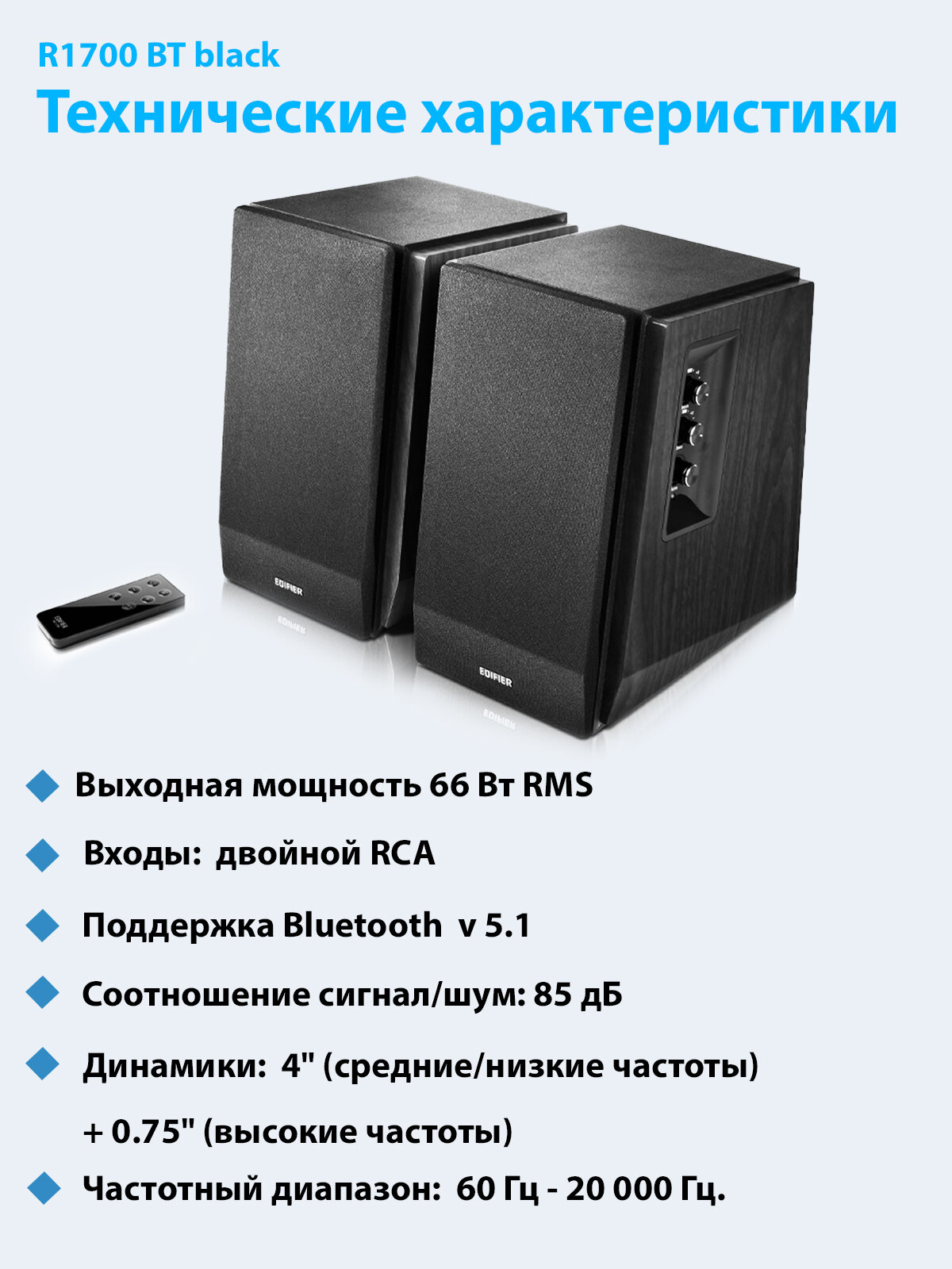 СохранитьКолонки Edifier R1700BT Black мощность 66 Вт, Bluetooth v5 пульт.чёрные интересное: