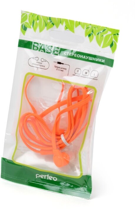 Perfeo наушники вакуумные BASE, плоский провод 1.2 м, оранжевые, Jack 3.5 PF-BAS-ORG/PF_B4206 (арт. 556477)