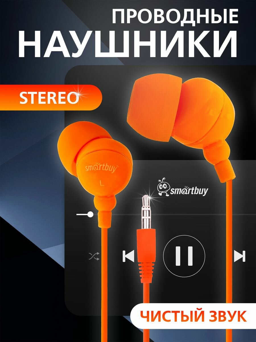 Купить Проводные наушники внутриканальные Smart Buy SBE-1300 Color Trend, 3.5 Jack (оранжевый), 1 шт.