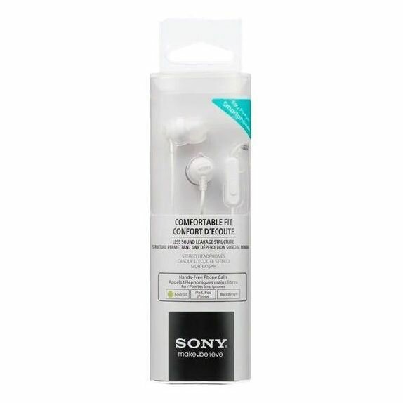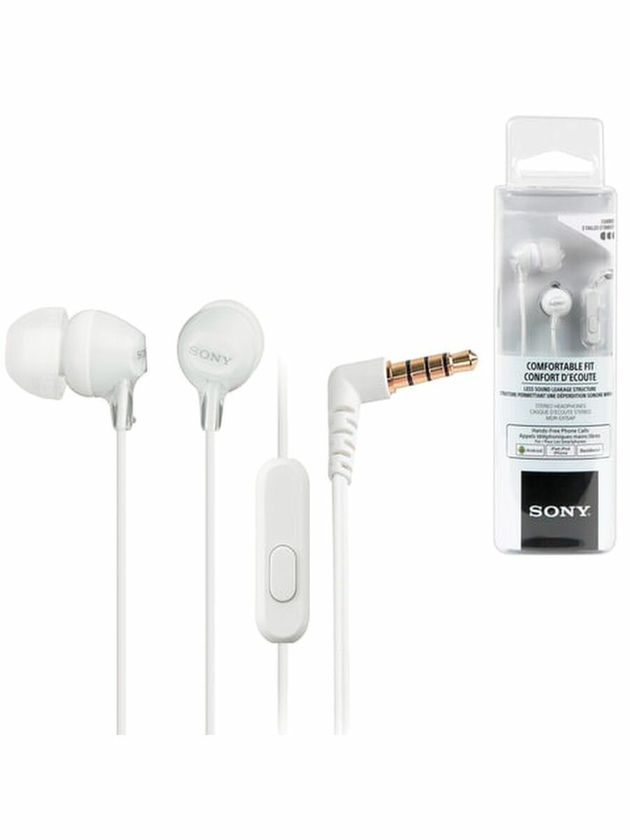 Наушники Sony MDR-EX15AP, проводные с микрофоном, белые, оригинал, РСТ