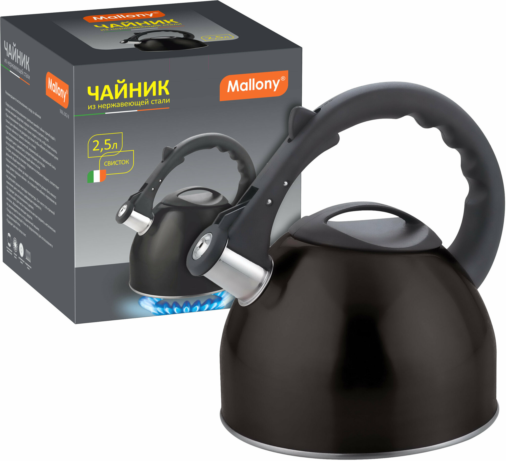 Чайник со свистком Mallony MAL-042-N 2,5 л, черный, нержавеющая сталь