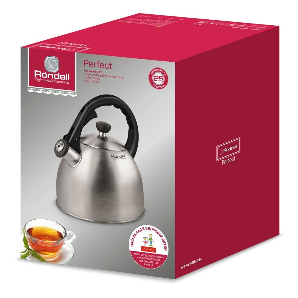 Rondell Чайник со свистком Perfect RDS-494, 2.2 л, стальной