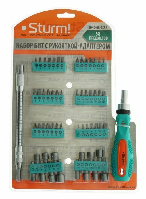 Купить Набор отверточных бит STURM 1040-08-SS58 с рукояткой-адаптером 58 шт, блистер