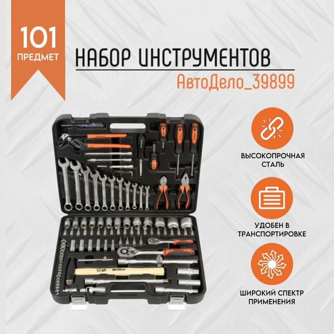 Набор автомобильных инструментов АвтоDело 39899, 101 предм., черный