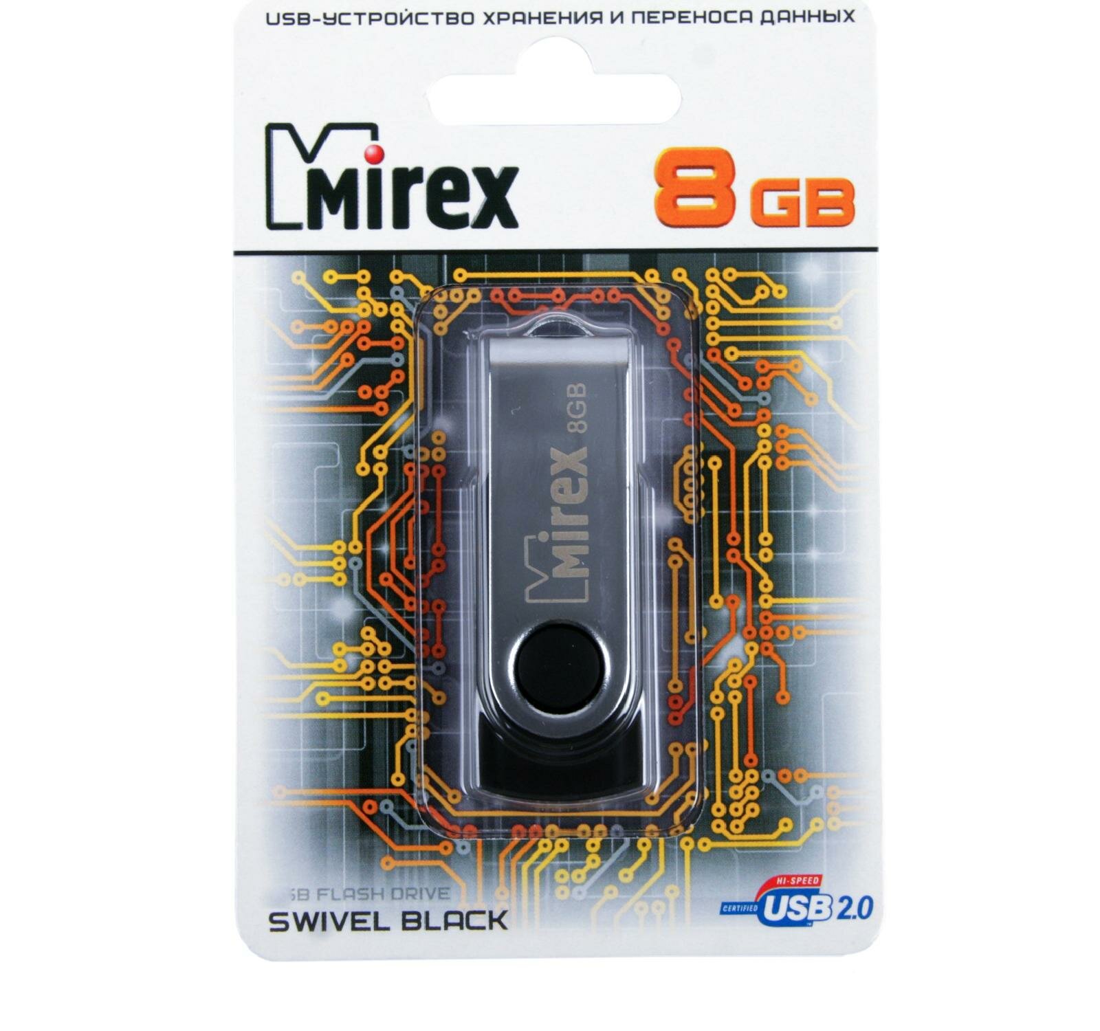 Флэш-память USB 8 GB Mirex Swivel, USB 2.0, Черный