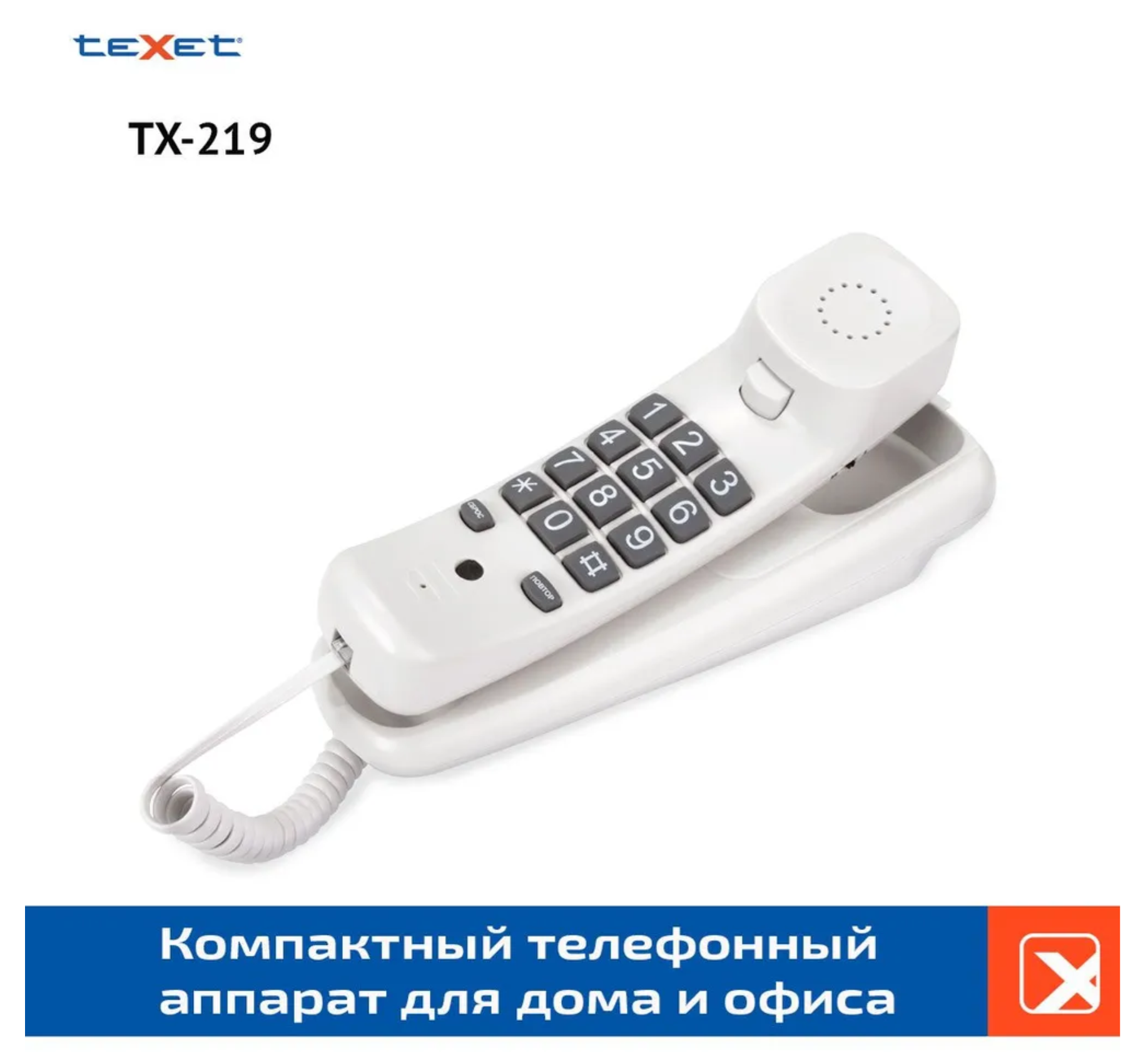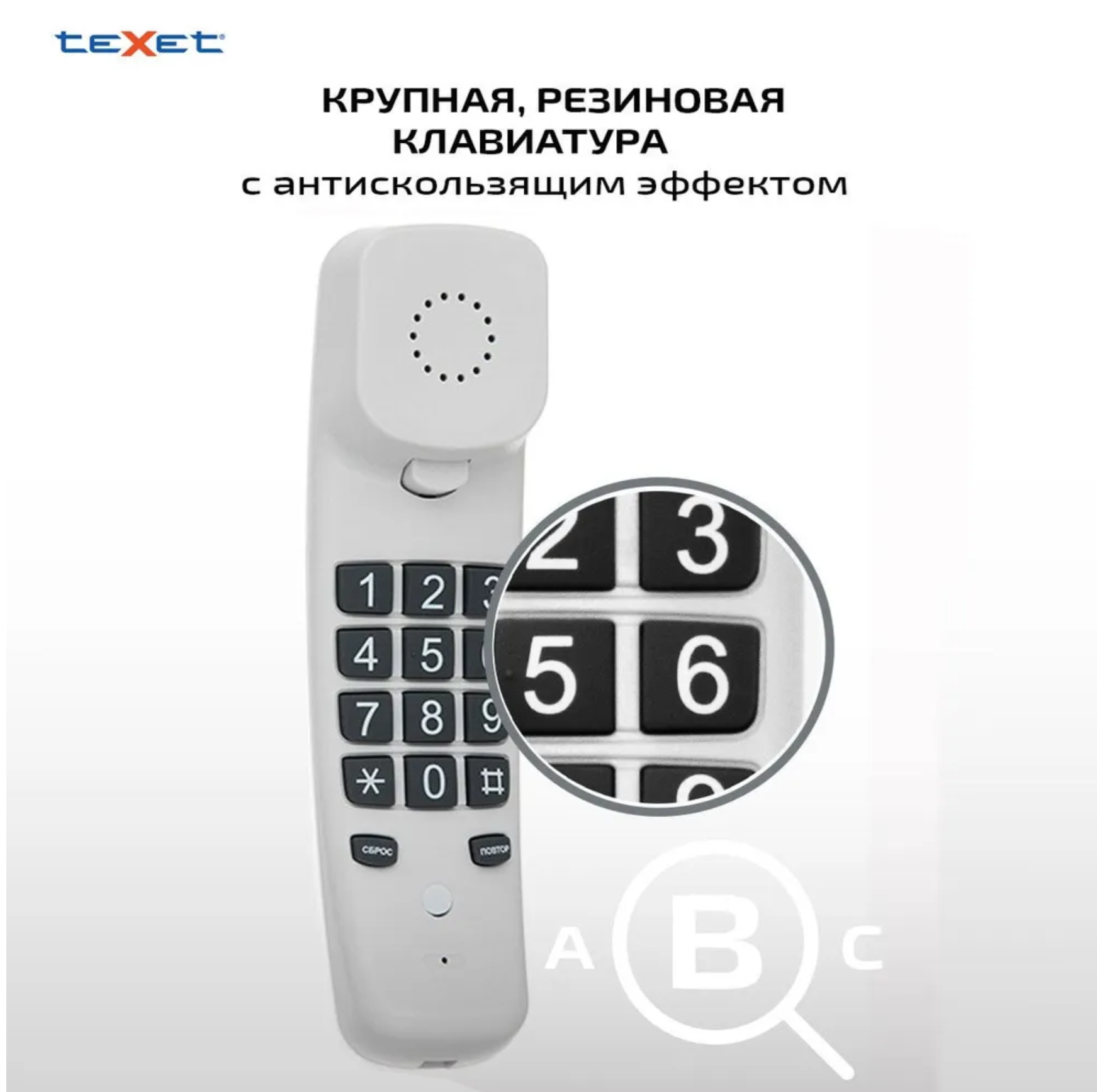 Телефон проводной TeXet TX-219 светло-серый, 1282371