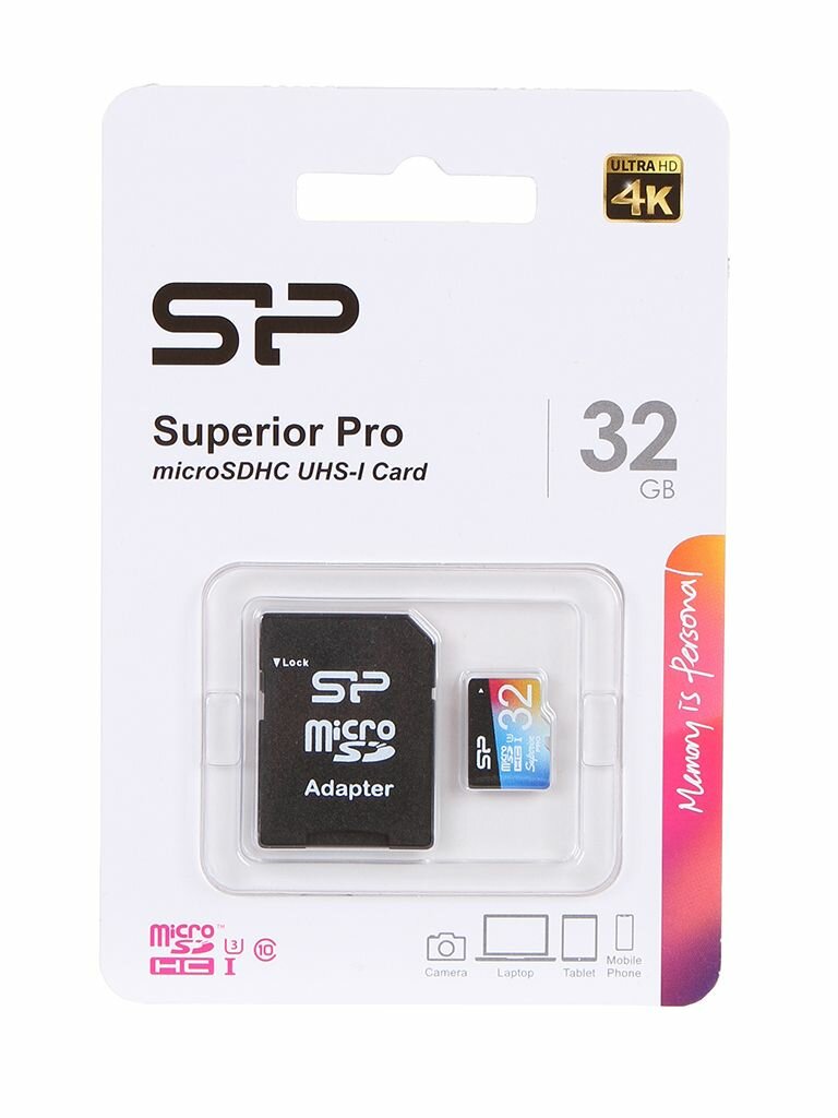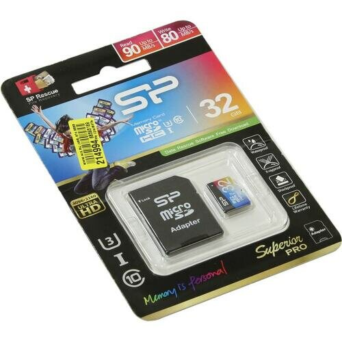 32Gb - Silicon Power Superior Pro MicroSDHC Class 10 Uhs-i U3 Sp032gbsthdu3v20sp с адаптером SD (Ори .