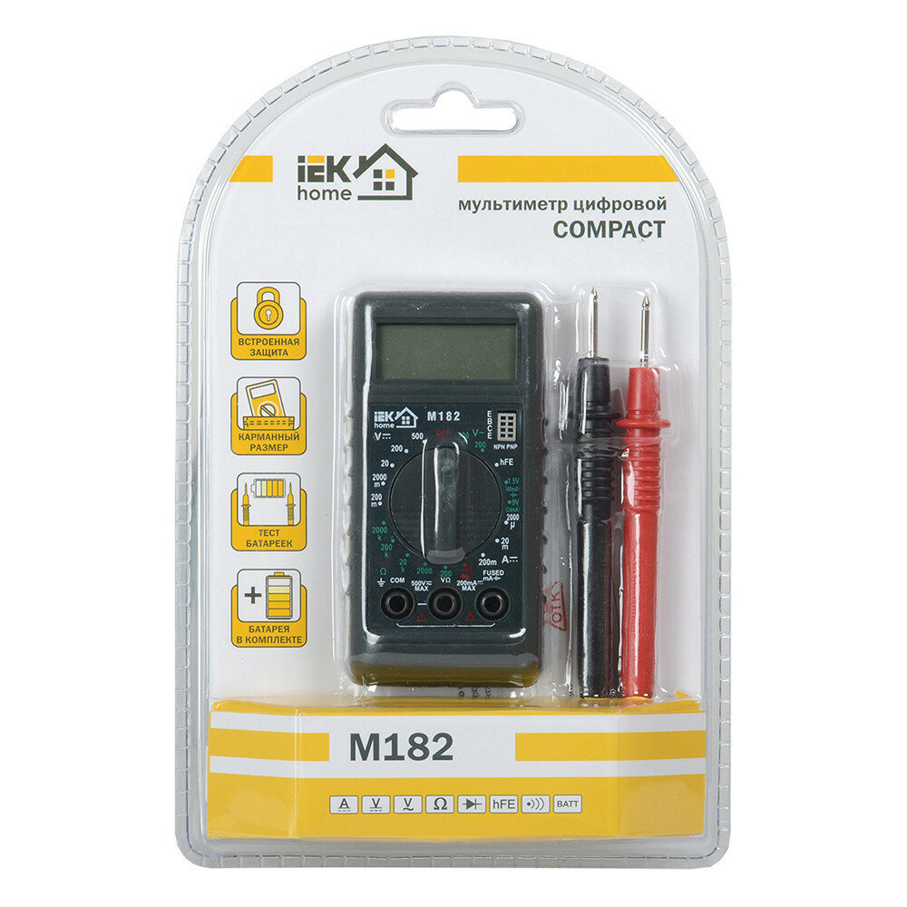 Мультиметр цифровой IEK Compact M182, с ЖК-дисплеем