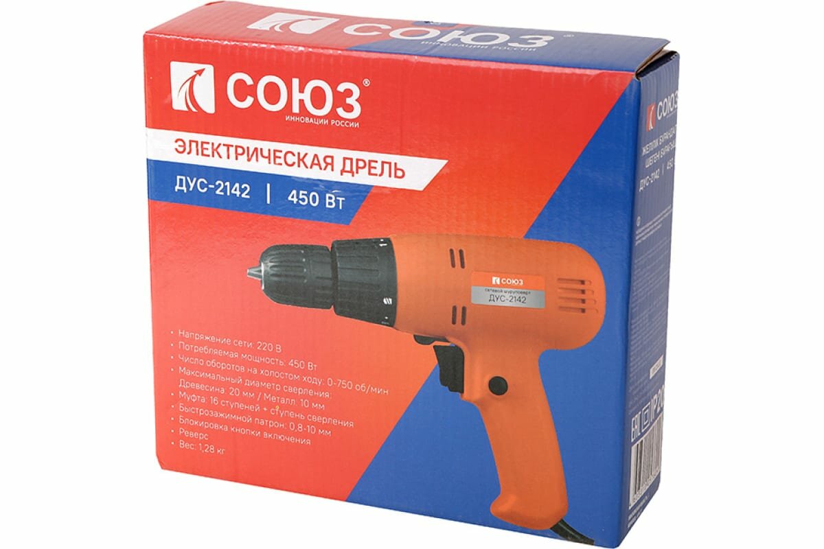 Дрель-шуруповерт СОЮЗ ДУС-2142, 450 Вт, без аккумулятора