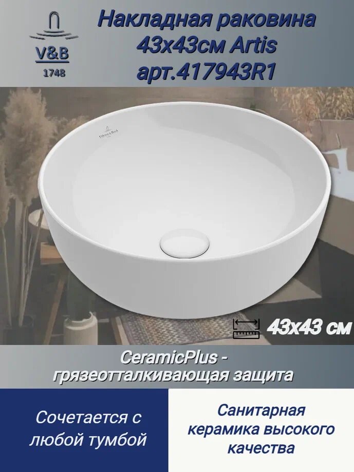 Раковина Villeroy & Boch Artis 4179 43 R1 430x430x130 CeramicPlus