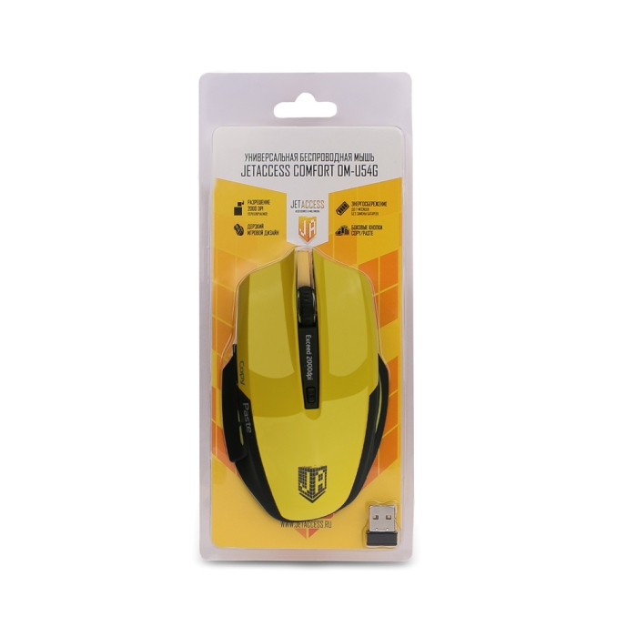 Мышь беспроводная Jet.A Comfort OM-U54G желтая (1200/1600/2000dpi, 5 кнопок, USB)копировать/вставить