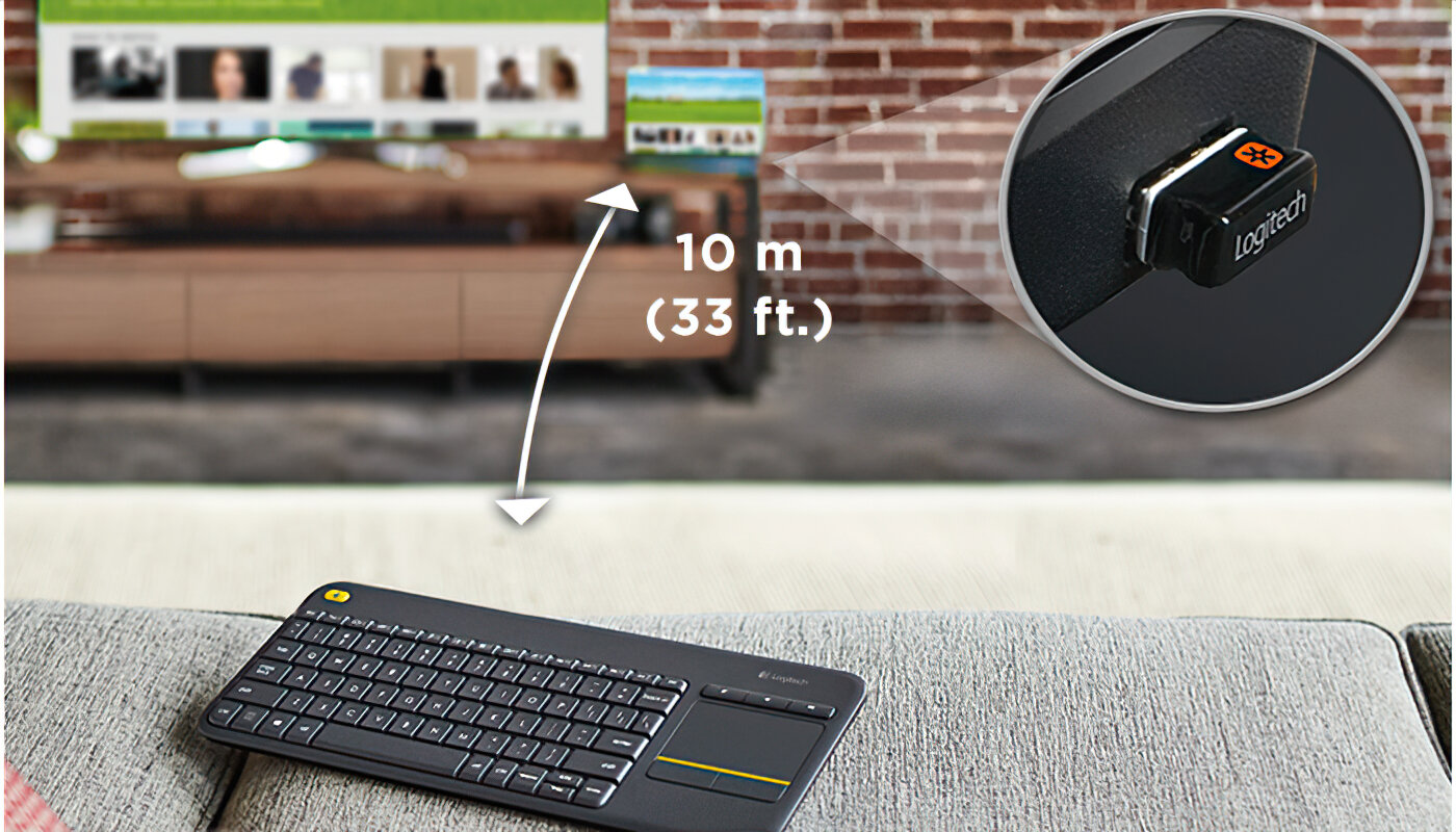 КлавиатураLogitechK400PlusWirelessTouchKeyboardBlack(920-007173) .