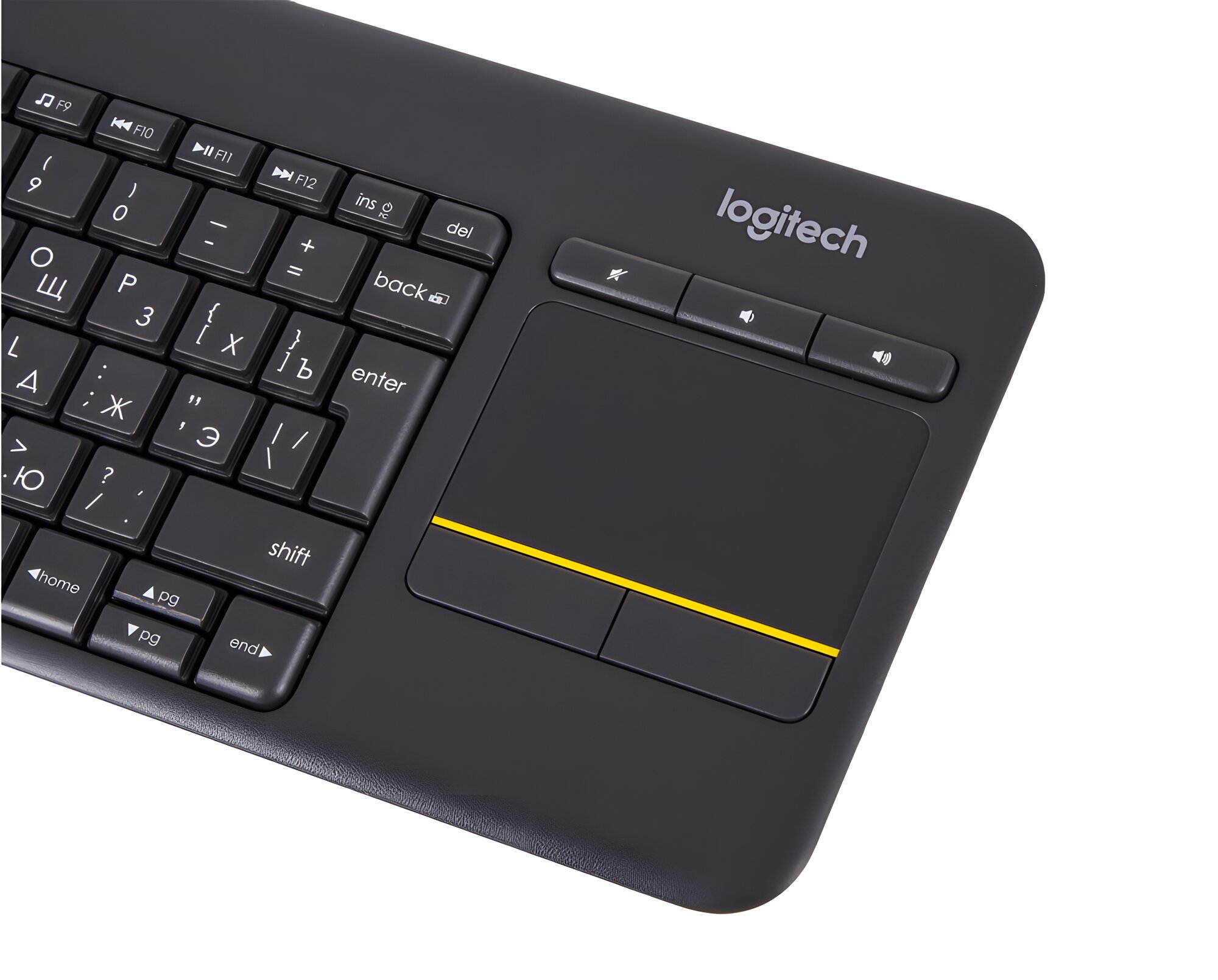 Клавиатура беспроводная Logitech K400 Plus, Wireless, RU/ENG (ANSI), Черный 920-007173