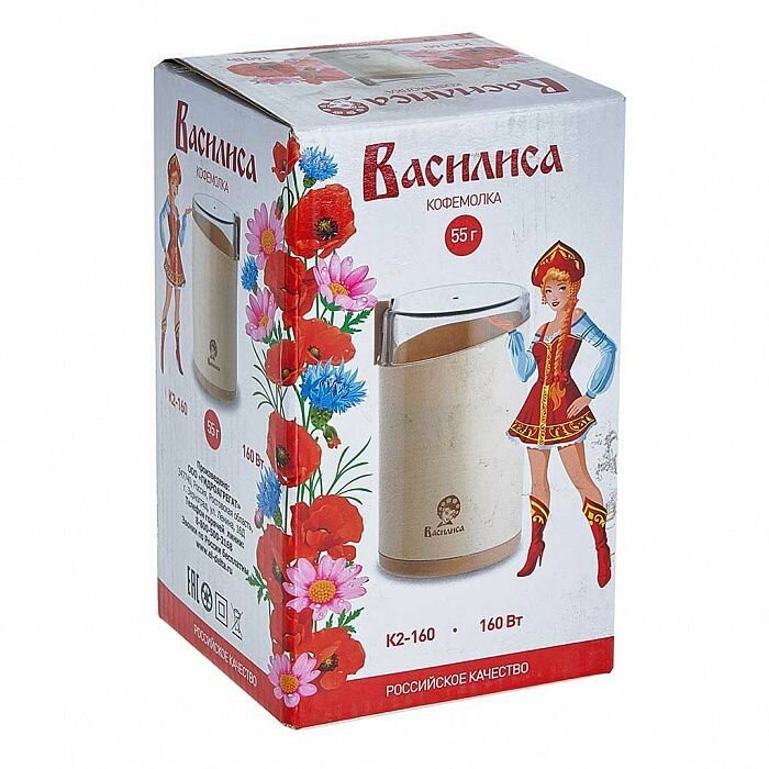 Кофемолка василиса К2-160 бежевый, 160 Вт, вместимость 65 г, нож нержавеющая сталь 24 0R-00000229