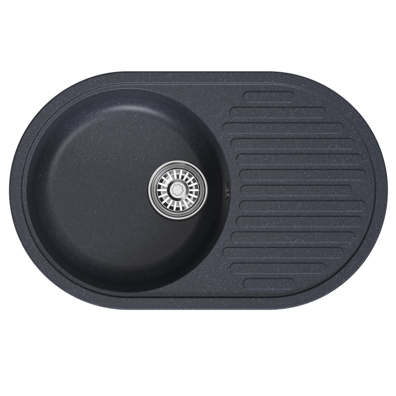 Мойка для кухни из искусственного мрамора, овальная, с крылом, с сифоном MIXLINE ML-GM 16, графит