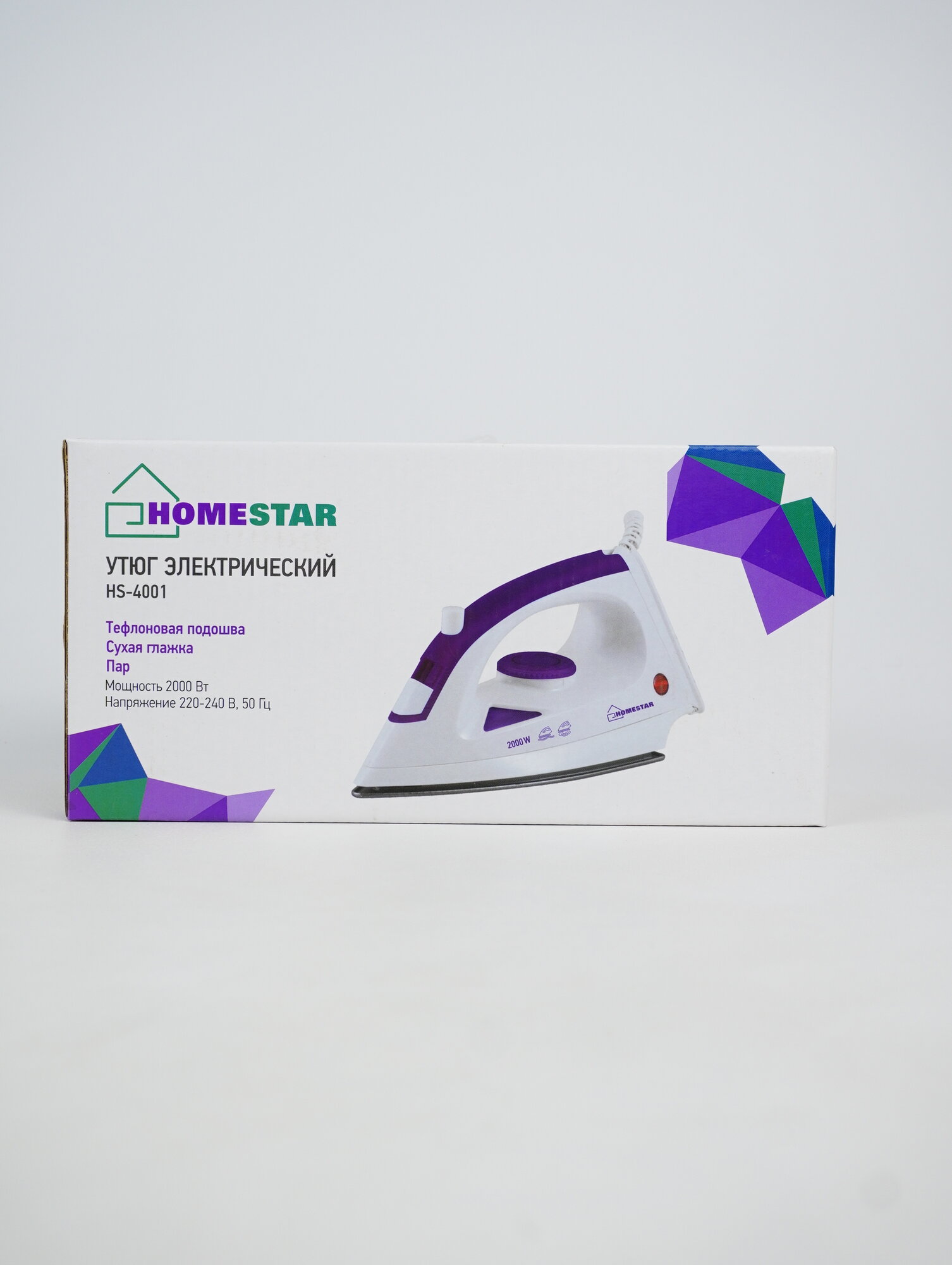 Утюг HOMESTAR HS-4001 бело-фиолетовый (2000Вт, пар, тефлоновая подошва)