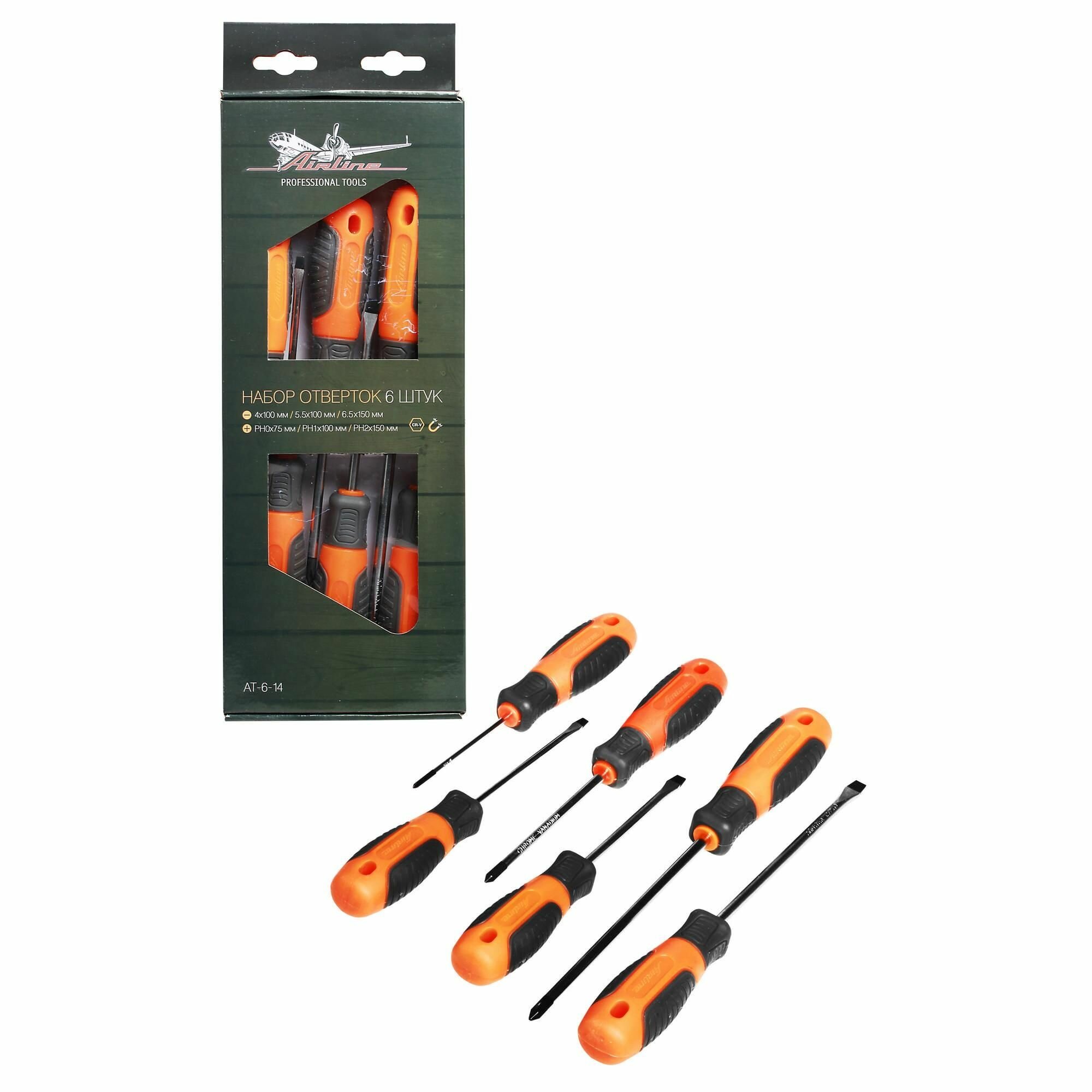 Набор отверток Airline, шлицевые (SL4, SL5.5, L6.5) и крестовые (PH0, PH1, PH2), 6 предметов, арт. AT-6-14