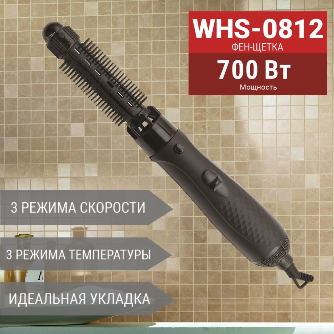 Фен-щётка WHS-0812, 800 Вт, 3 скорости, 3 температурных режима, 1 насадка, черный