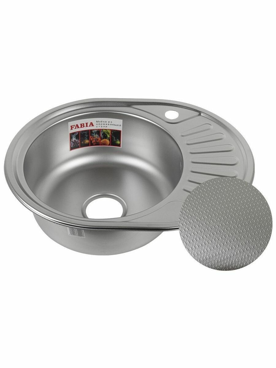 FABIA - Мойка врезная, декор, 57х45 см, левая, толщина 0,8 мм, глубина 160 мм + большой сифон с переливом 62330DL