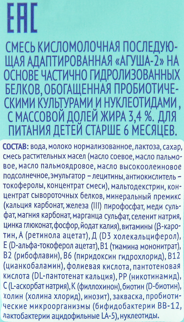 Смесь кисломолочная агуша 2 с витаминами и минеральными веществами 3,4%, без змж, 204г интересное: