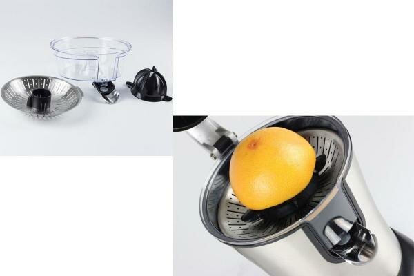 Дизайнерская соковыжималка для цитрусовых Caso CP 200, электрическая и мощная соковыжималка для лимона с универсальными пресс-конусами для всех распространенных цитрусовых, 160 Вт, система капля-стоп , сетчатый фильтр из нержавеющей стали, рычаг прижима