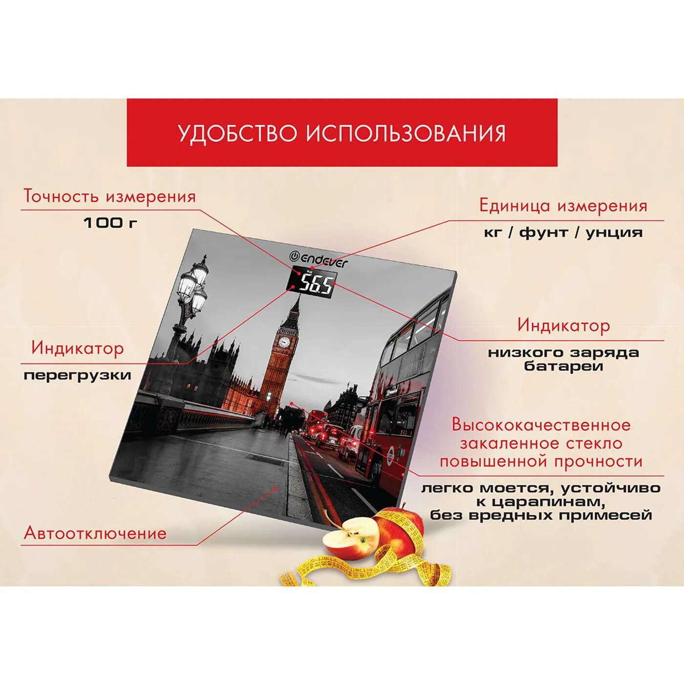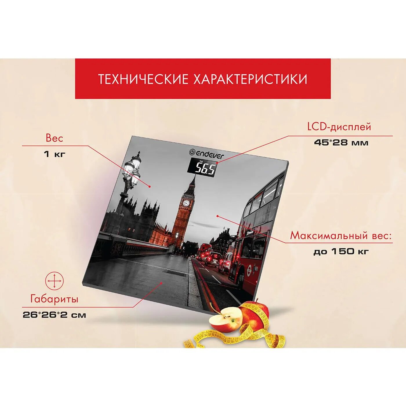 Весы напольные Endever Aurora-556 рисунок Биг Бен