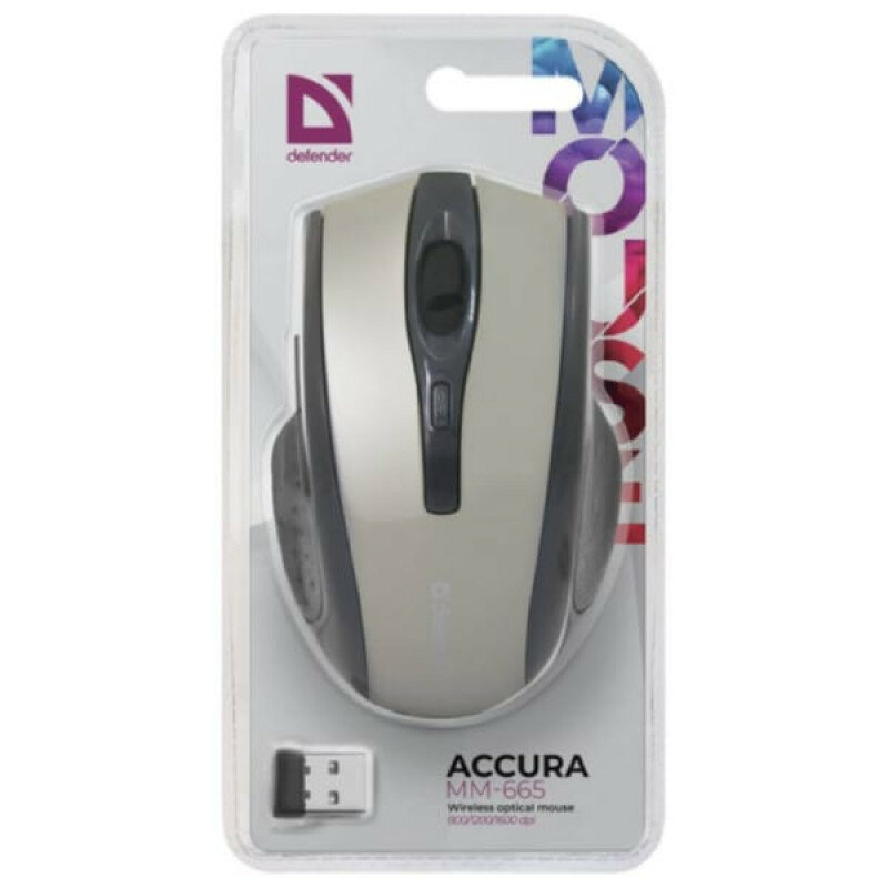 Defender Accura MM-665 серый Defender Беспроводная оптическая мышь Accura MM-665 серый,6 кнопок,800-1200 dpi 52666