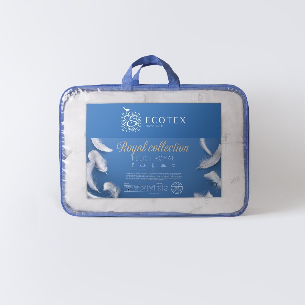 Одеяло кассетное Ecotex Феличе (200х220 см), пуховое, теплое