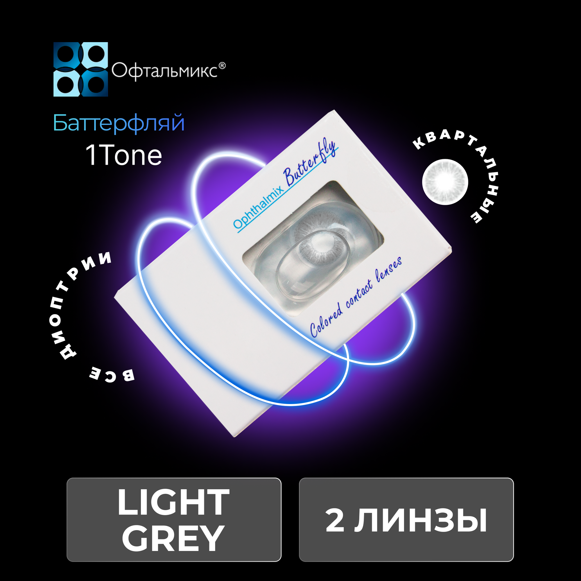 Офтальмикс Butterfly 1-тоновые (2 линзы) -1.00 R 8.6 Light Grey(серый)