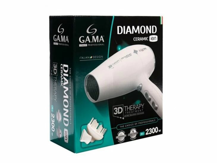 Ga-Ma DIAMOND 3D Фен GA.MA 3D-терапия, ионизация, мощность 2300 Ватт, керамика, белый