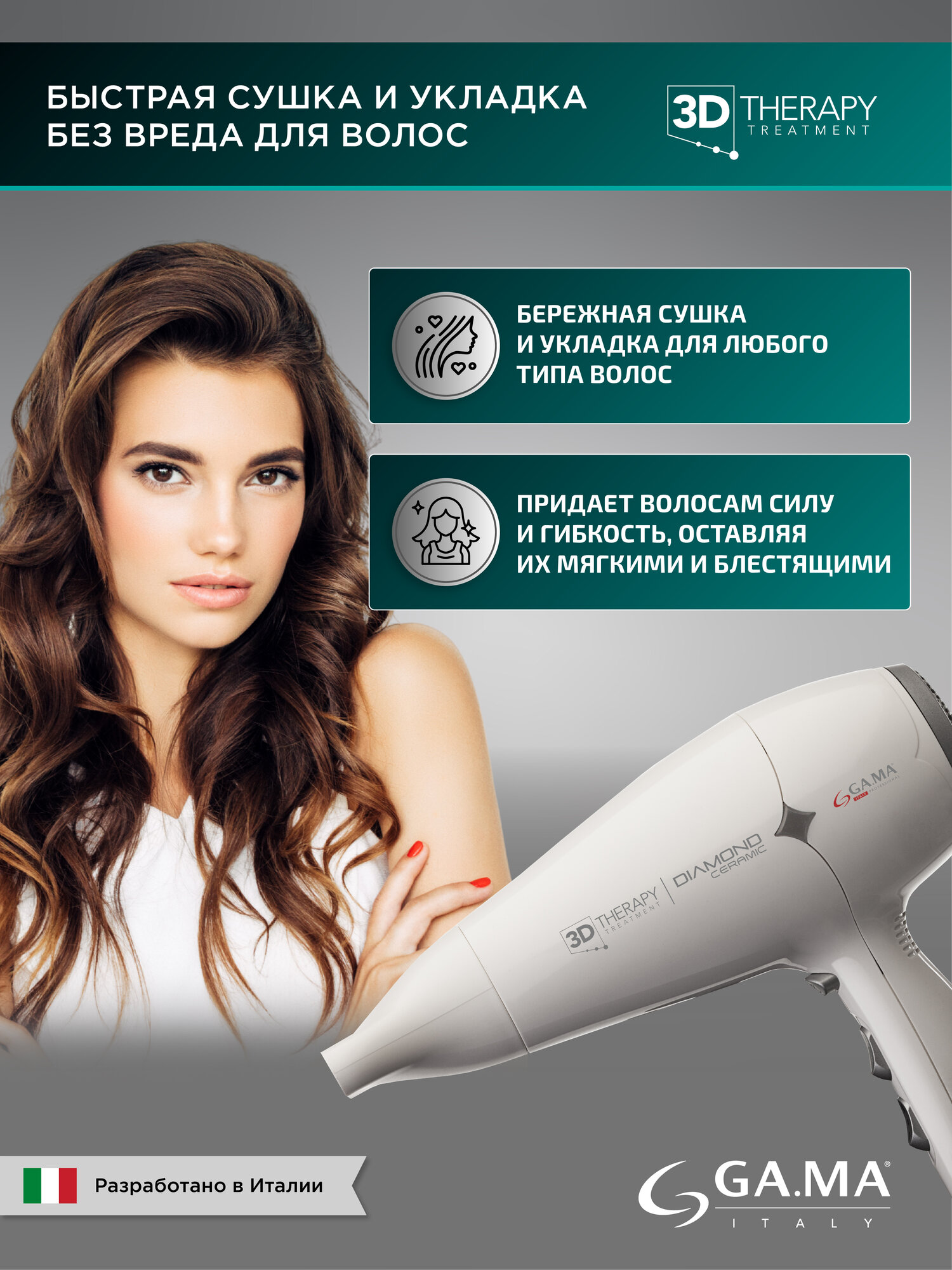 Фен GA.MA Diamond ион, 3D-терапия, 2300 Вт
