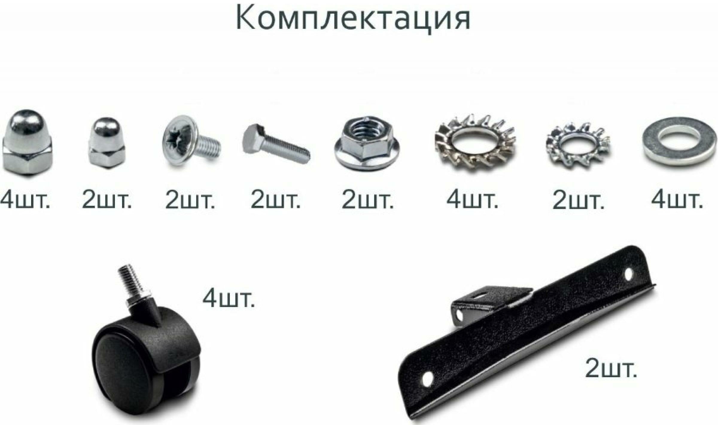 Настенный крепёж – 4 дюбель-гвоздя. (просверлил, вколотил, повесил) Напольный крепёж - ролики, в комплекте. |