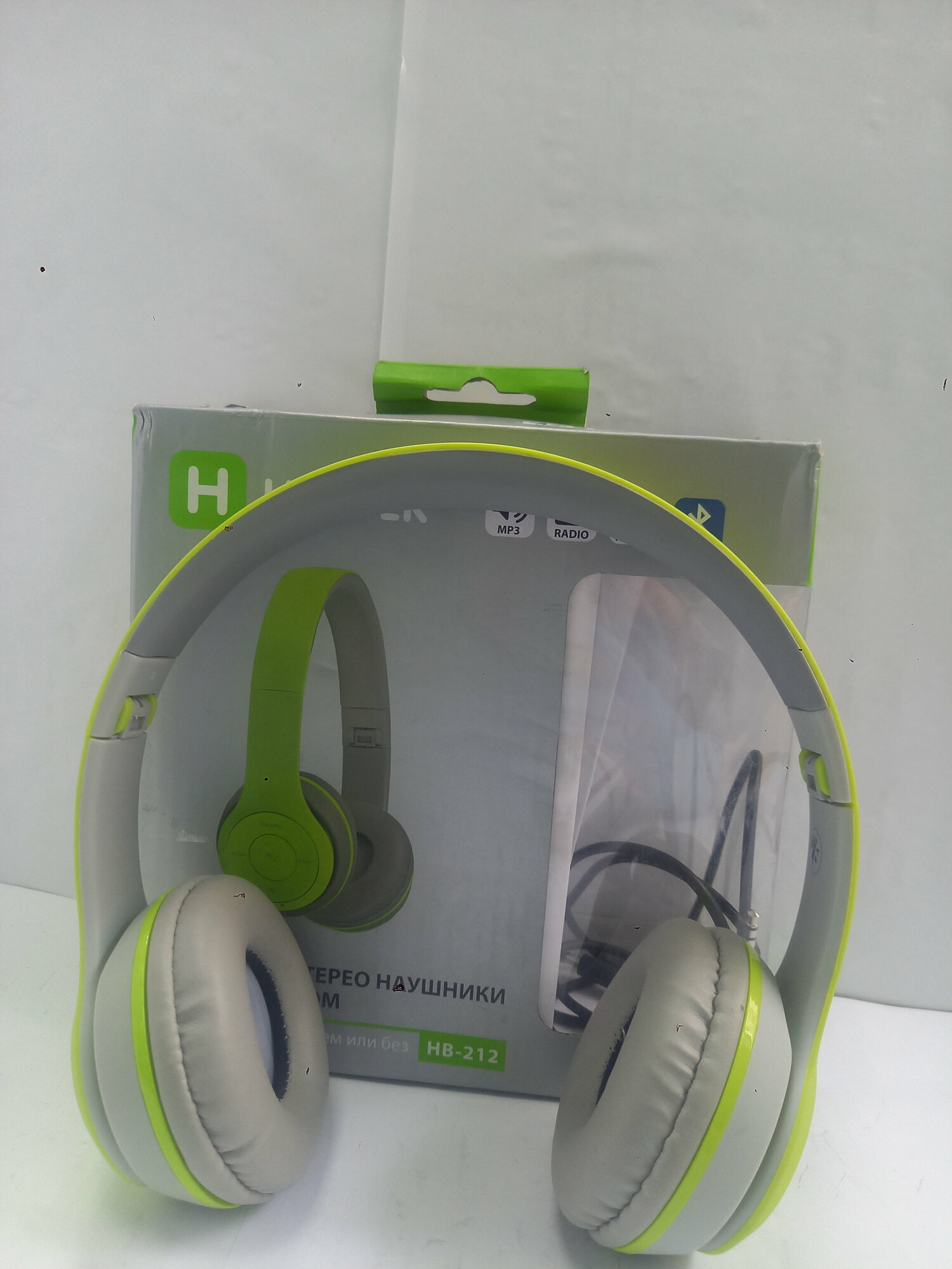 Наушники HARPER HB-212 беспроводные, накладные, зеленый/белый