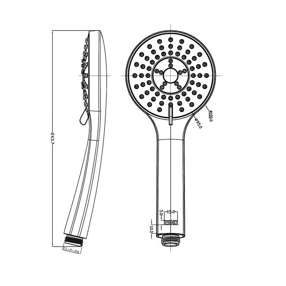Лейка душевая ESKO, 5 реж., диам, 95мм арт. SPL955, ESKO
