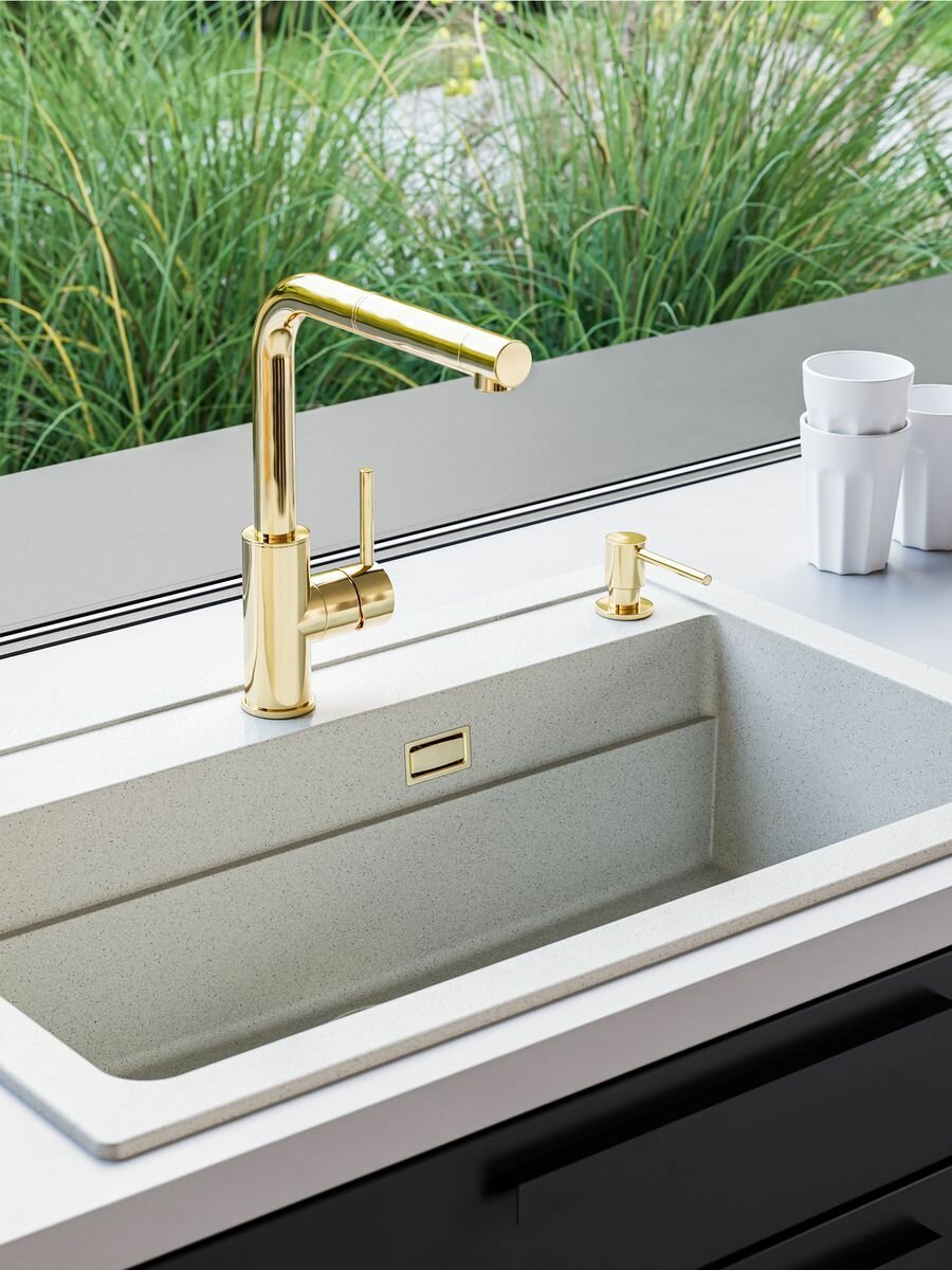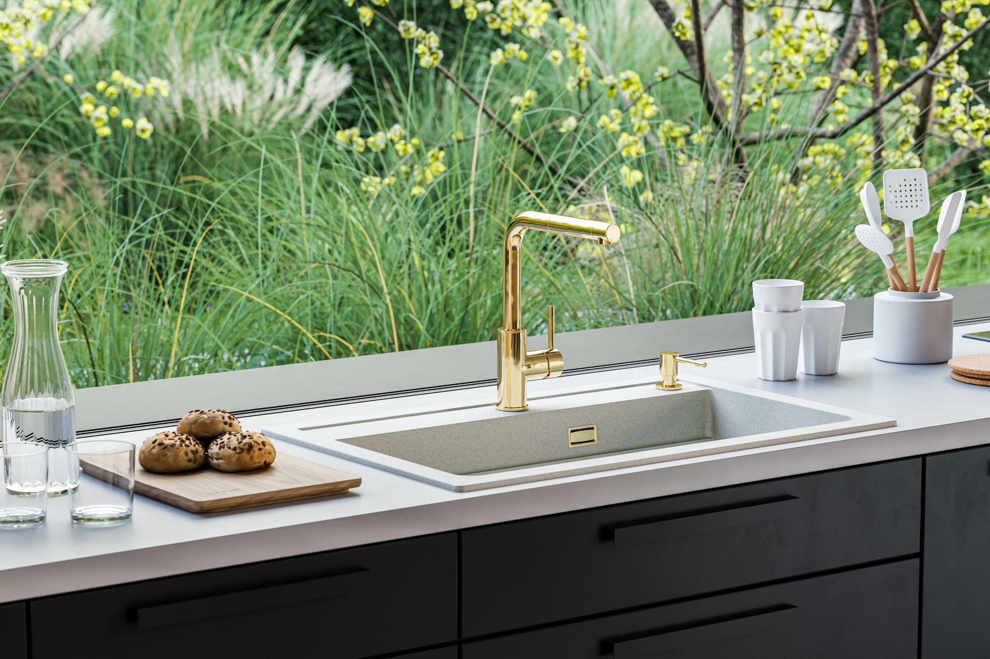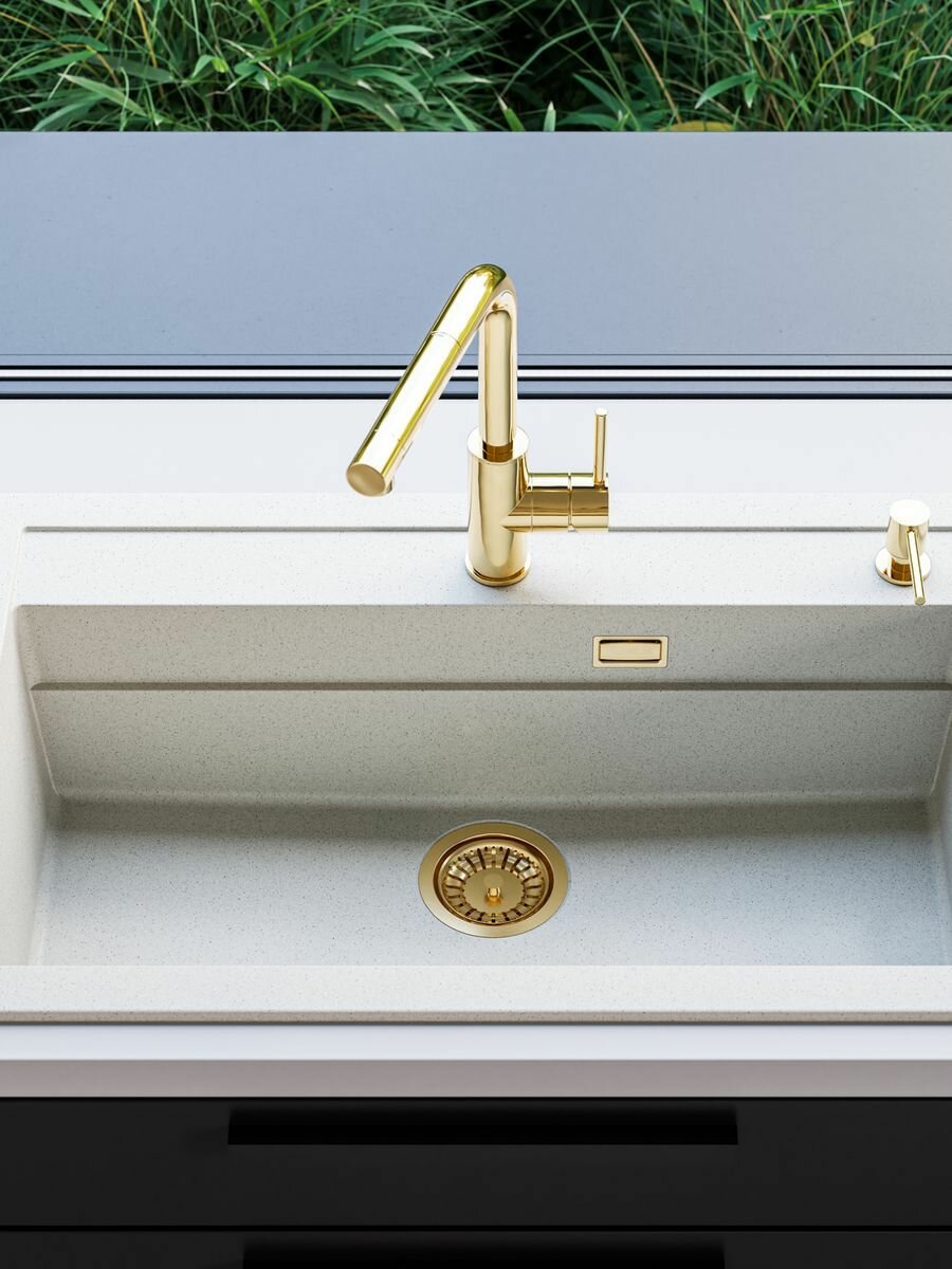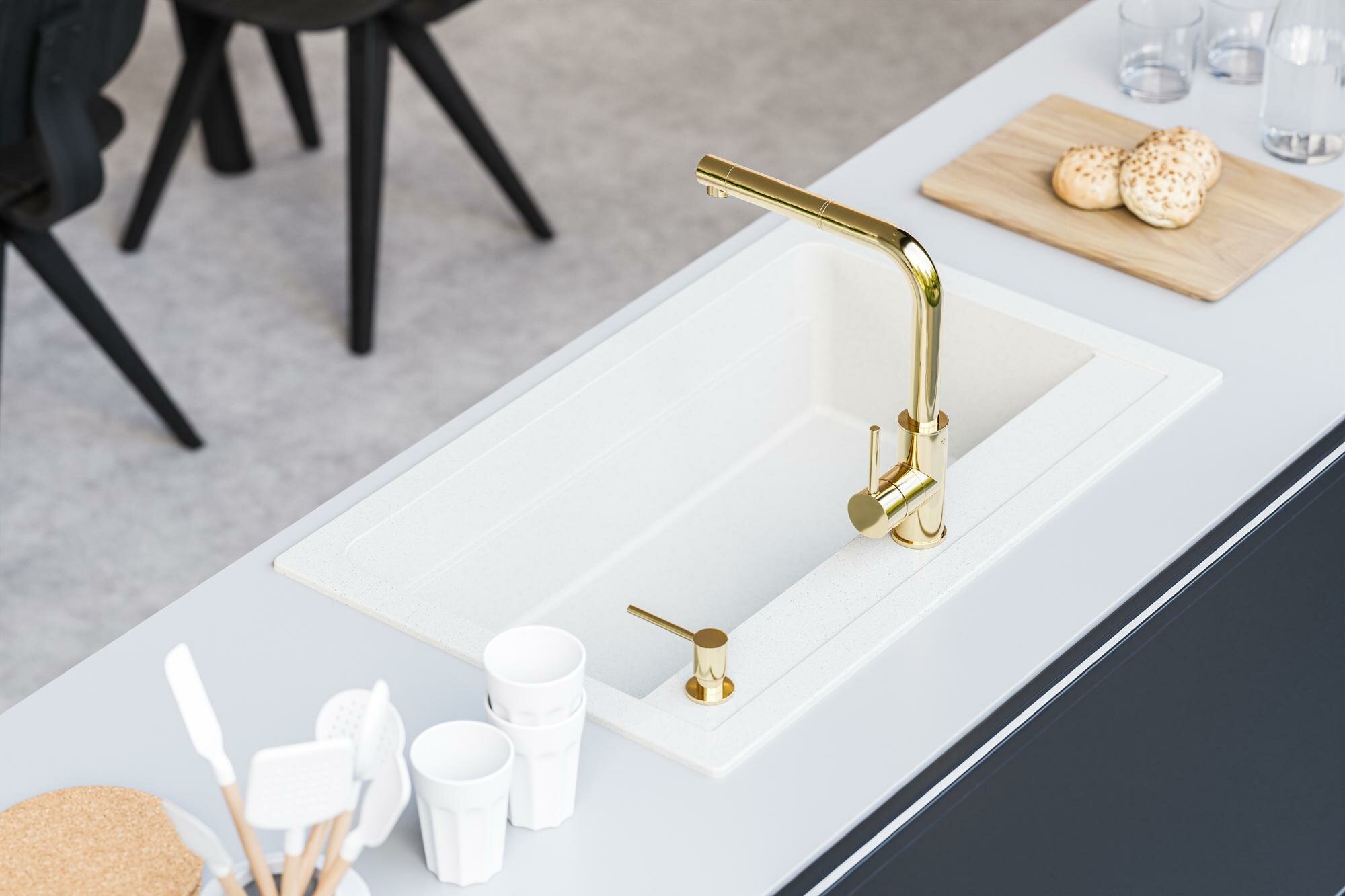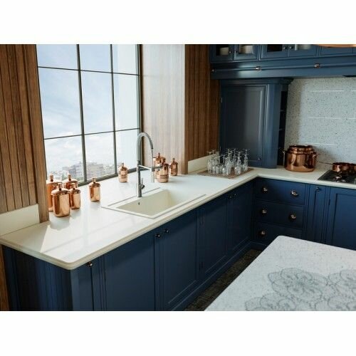 Раковина для кухни врезная каменная Alveus Granital Atrox 40 TERRA - G22 790 X 500 / кухонная мойка накладная из искусственного камня, гранит, бежевый