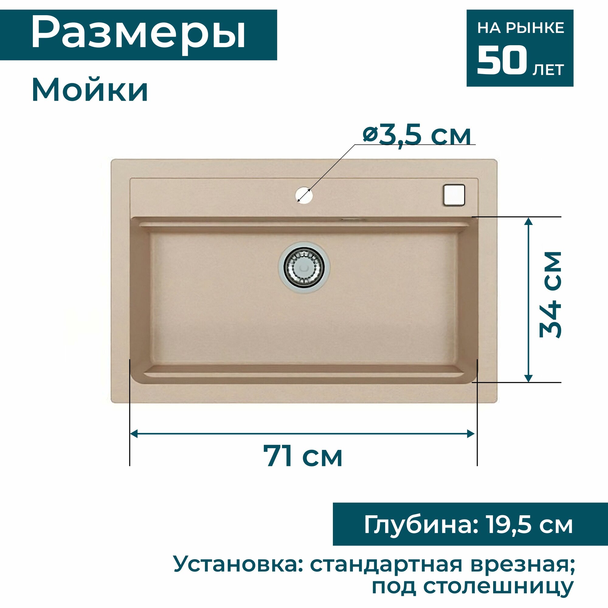 СохранитьРаковина для кухни врезная каменная Alveus Granital Atrox 40 TERRA - G22 790 X 500 / кухонная мойка накладная из искусственного камня, гранит, бежевый интересное: