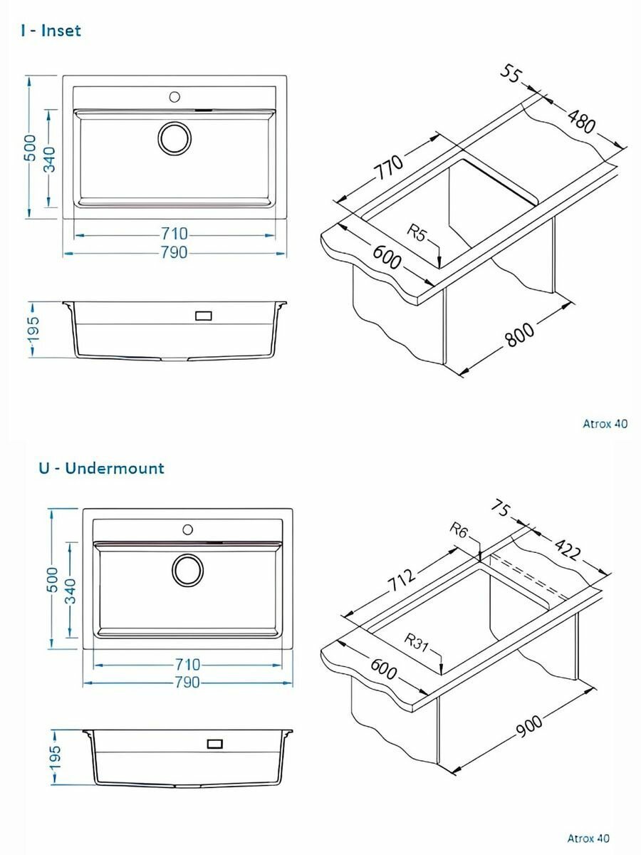 Мойка кухонная Alveus Granital Atrox 40 Carbon-G91 790х500х195 с сифоном, черная