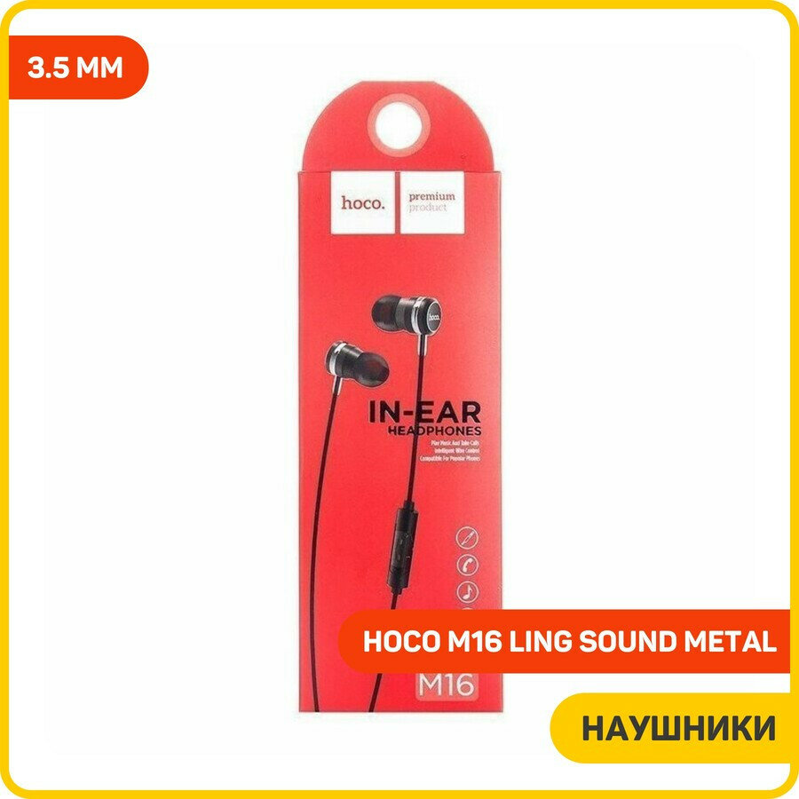 91291 Наушники вкладыши с микрофоном HOCO M16 LING SOUND METAL BLACK (черные)