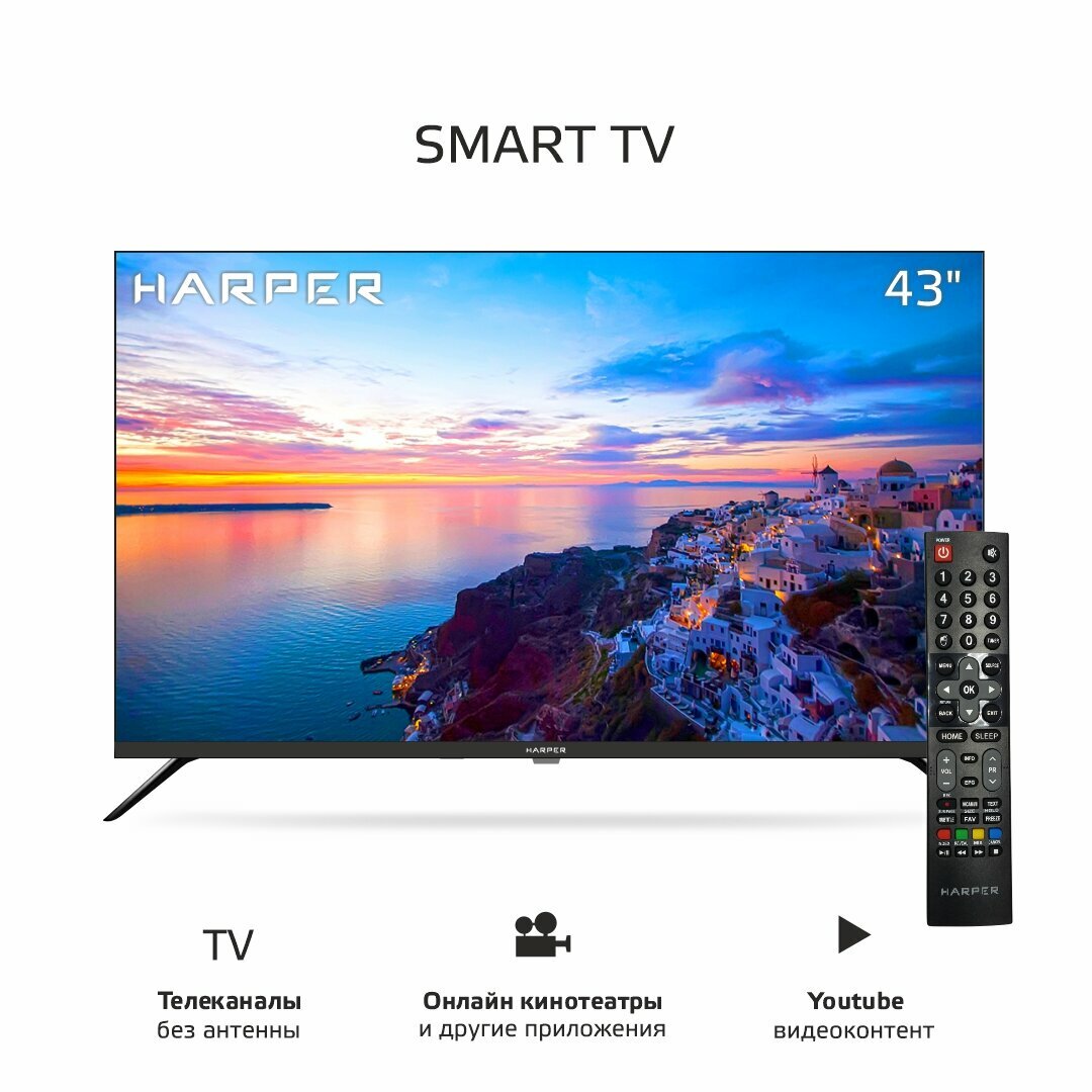 Телевизор HARPER 43F660TS / Smart TV / Full HD / диагональ 43" / 60 Гц, черный