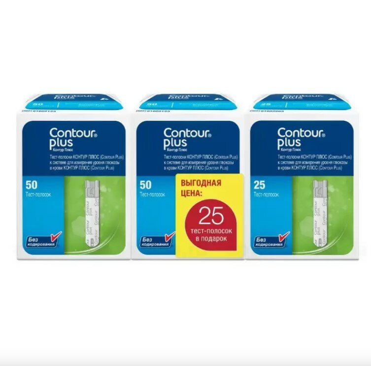 Контур Плюс, набор тест-полоски для глюкометра, 2 уп. по 50 шт.(+25 шт.)