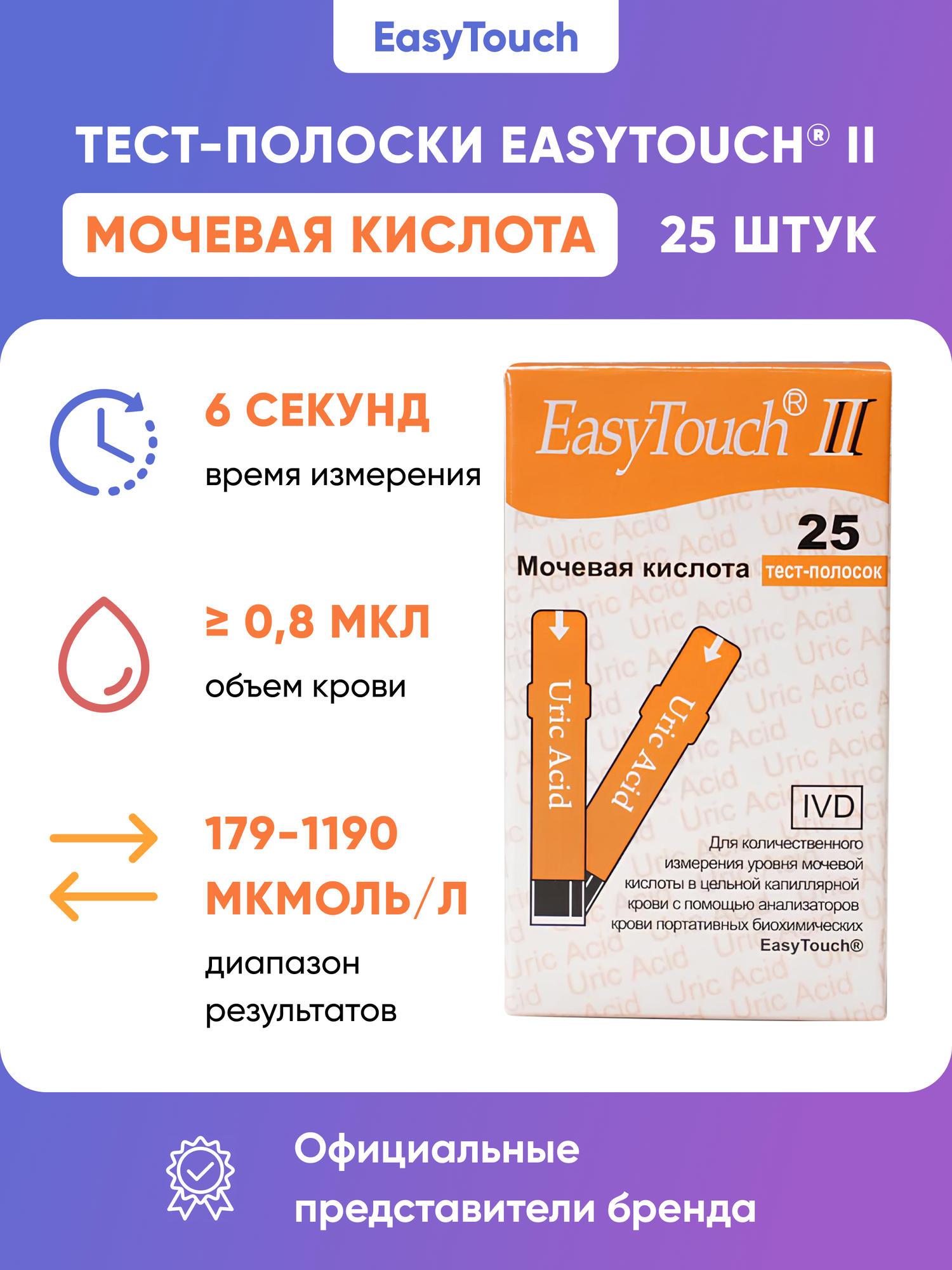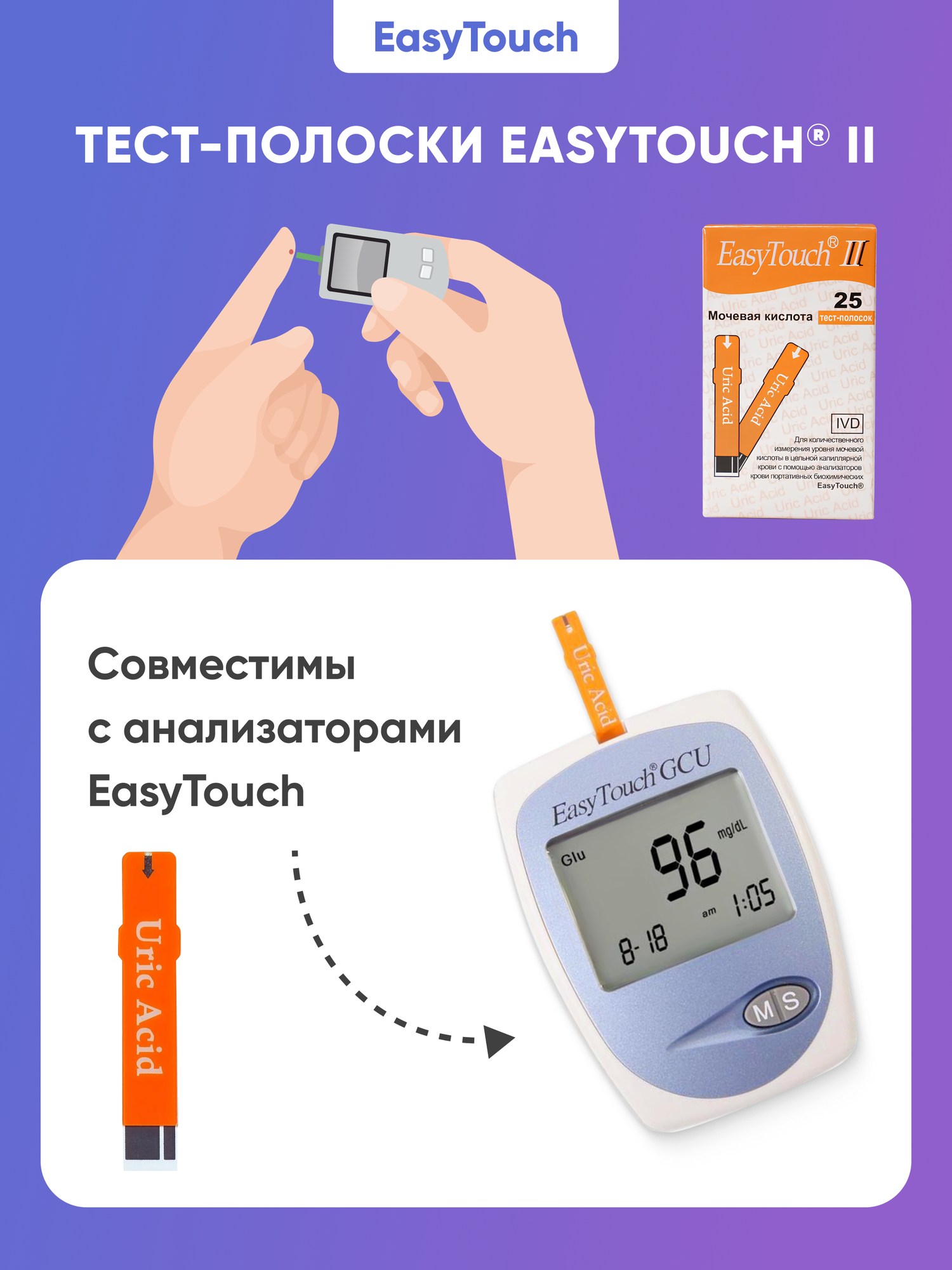 Тест-полоски на мочевую кислоту ИзиТач (EasyTouch Uric Acid) (25 шт), 2 уп.