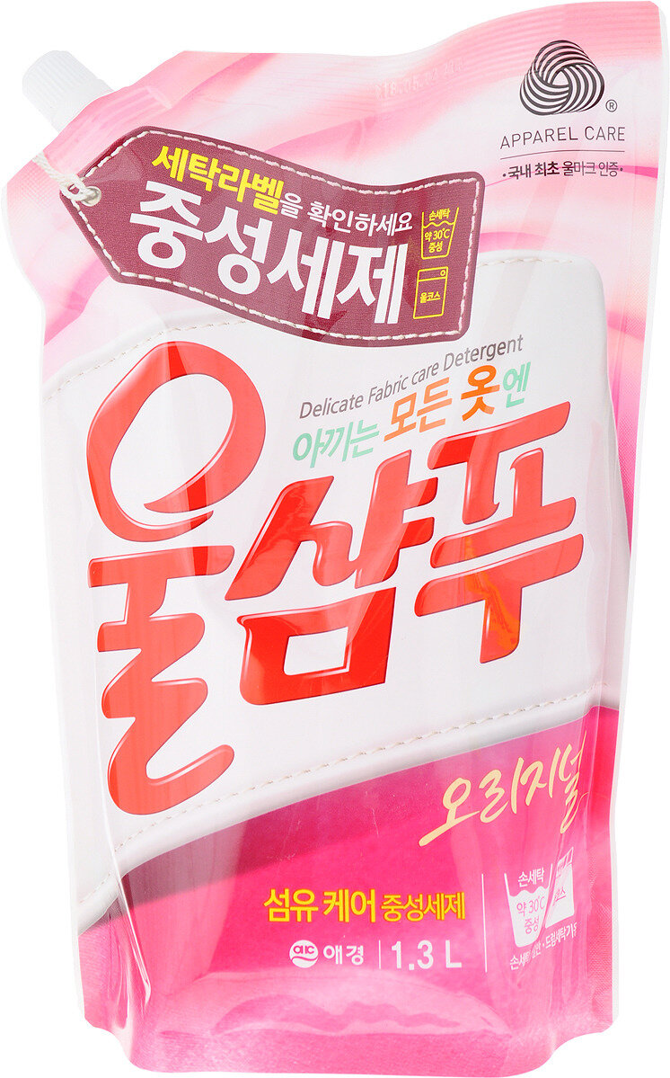 Aekyung Wool Shampoo Original Жидкое средство для стирки деликатных тканей Вул шампу 1.3 л в мягкой упаковке
