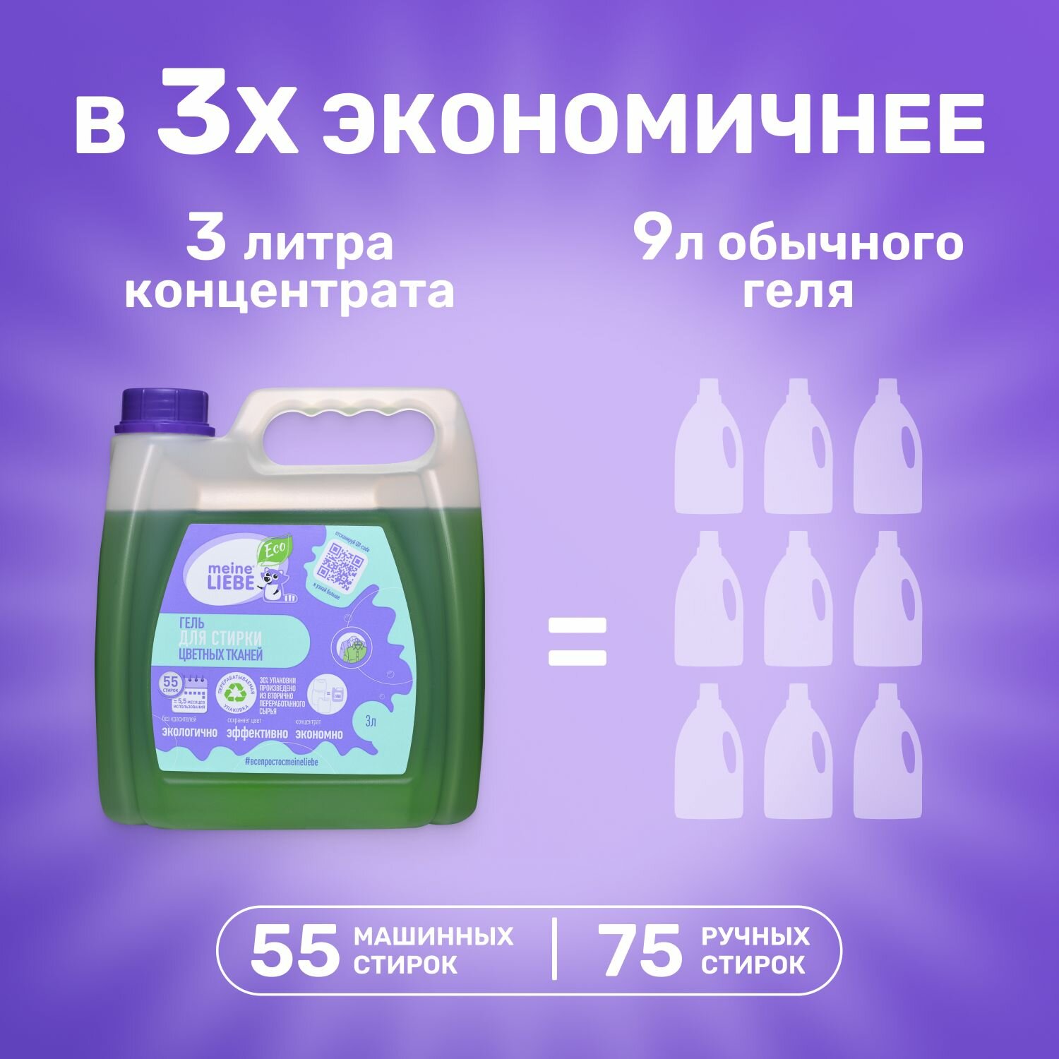 СохранитьГель для стирки цветных тканей Meine Liebe концентрат 3 л канистра . интересное: