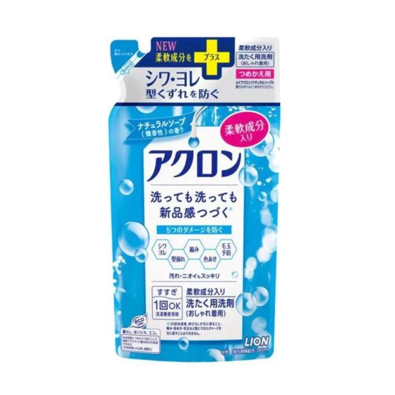 LION Жидкое средство для стирки ACRON деликатных тканей, шерсти, аромат мыла, 400 мл. сменная упаковка