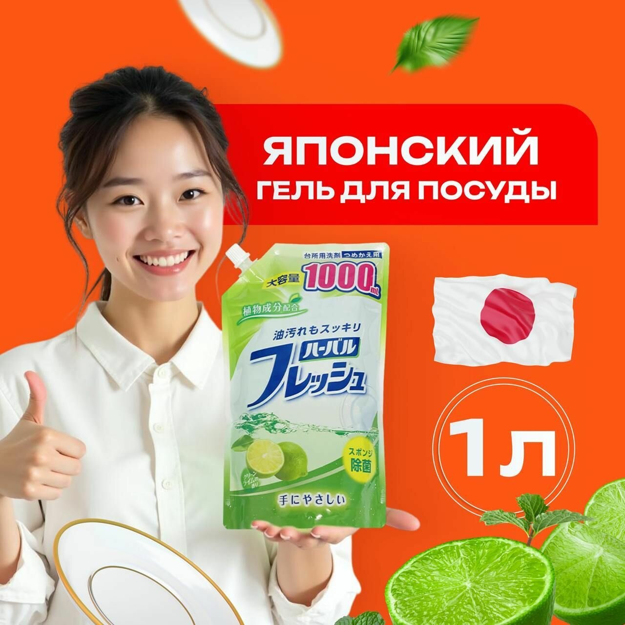 СохранитьСредство для мытья посуды, овощей и фруктов Mitsuei Япония с ароматом лайма 1 л, Универсальный гель для детской посуды и игрушек растительного происхождения экологичный интересное: