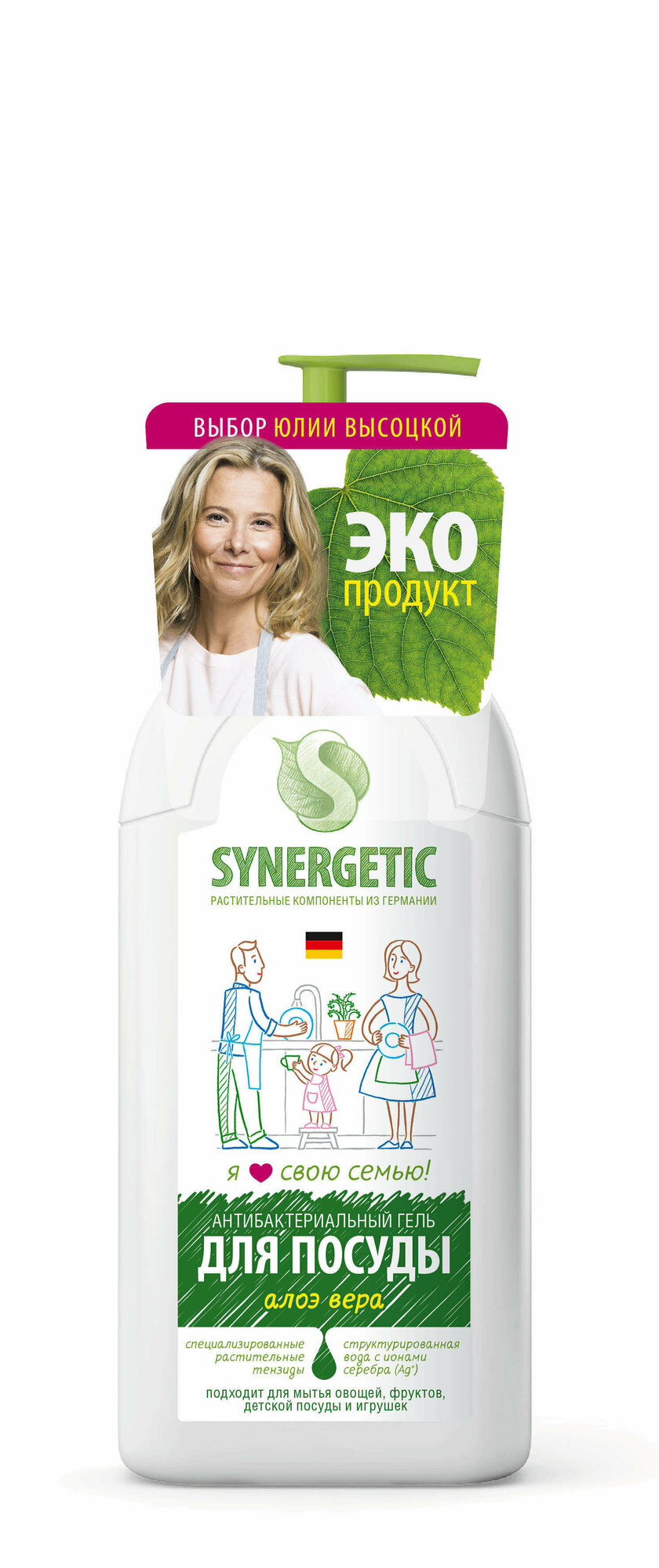 Synergetic Антибактериальный гель для мытья посуды Алоэ вера с дозатором, 0.5 л, 0.5 кг